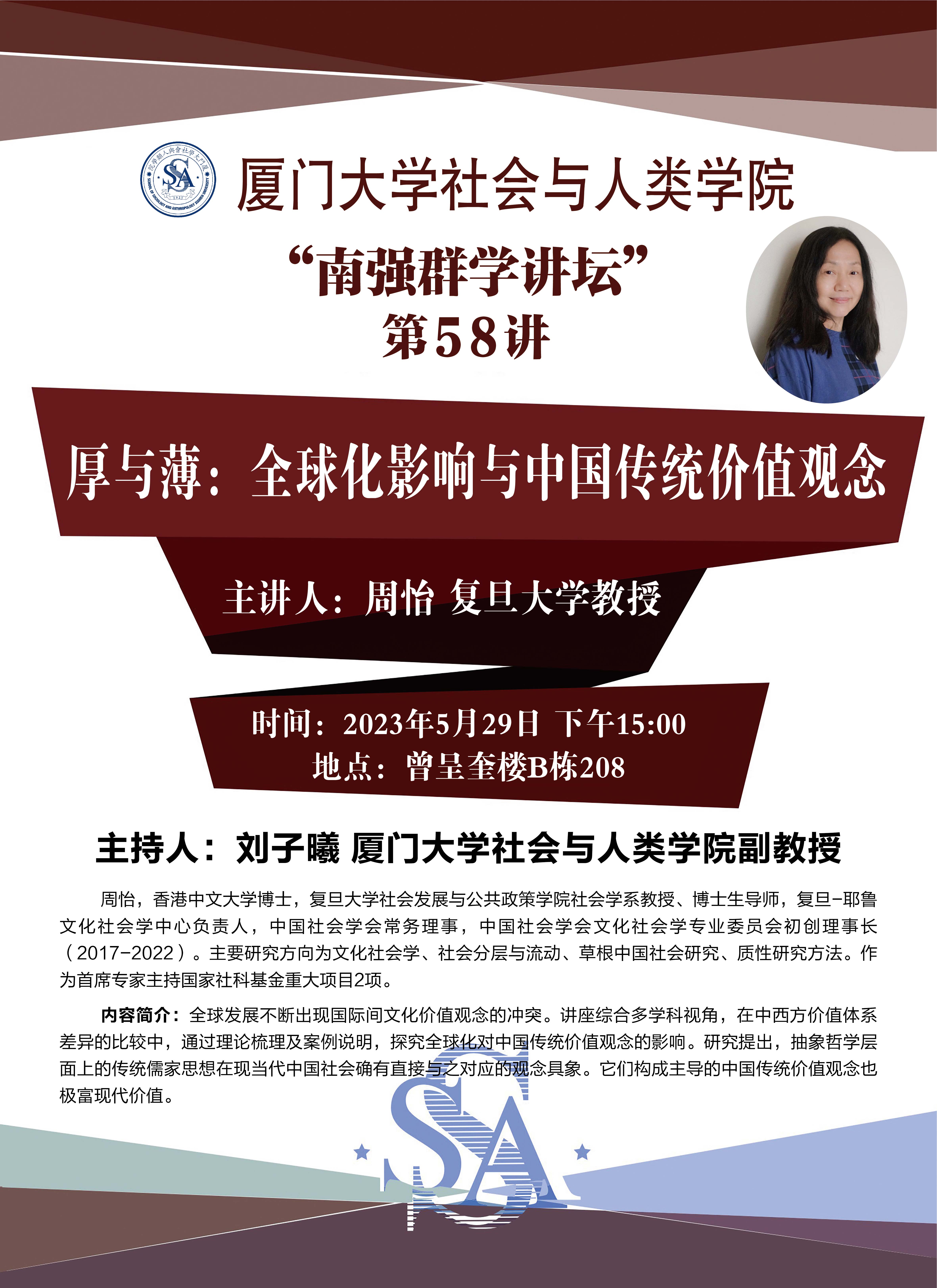 内容简介:全球发展不断出现国际间文化价值观念的冲突。讲座综合多学科视角,在中西方价值体系差异的比较中,通过理论梳理及案例说明,探究全球化对中国传统价值观念的影响。研究提出,抽象哲学层面上的传统儒家思想在现当代中国社会确有直接与之对应的观念具象。它们构成主导的中国传统价值观念也极富现代价值。