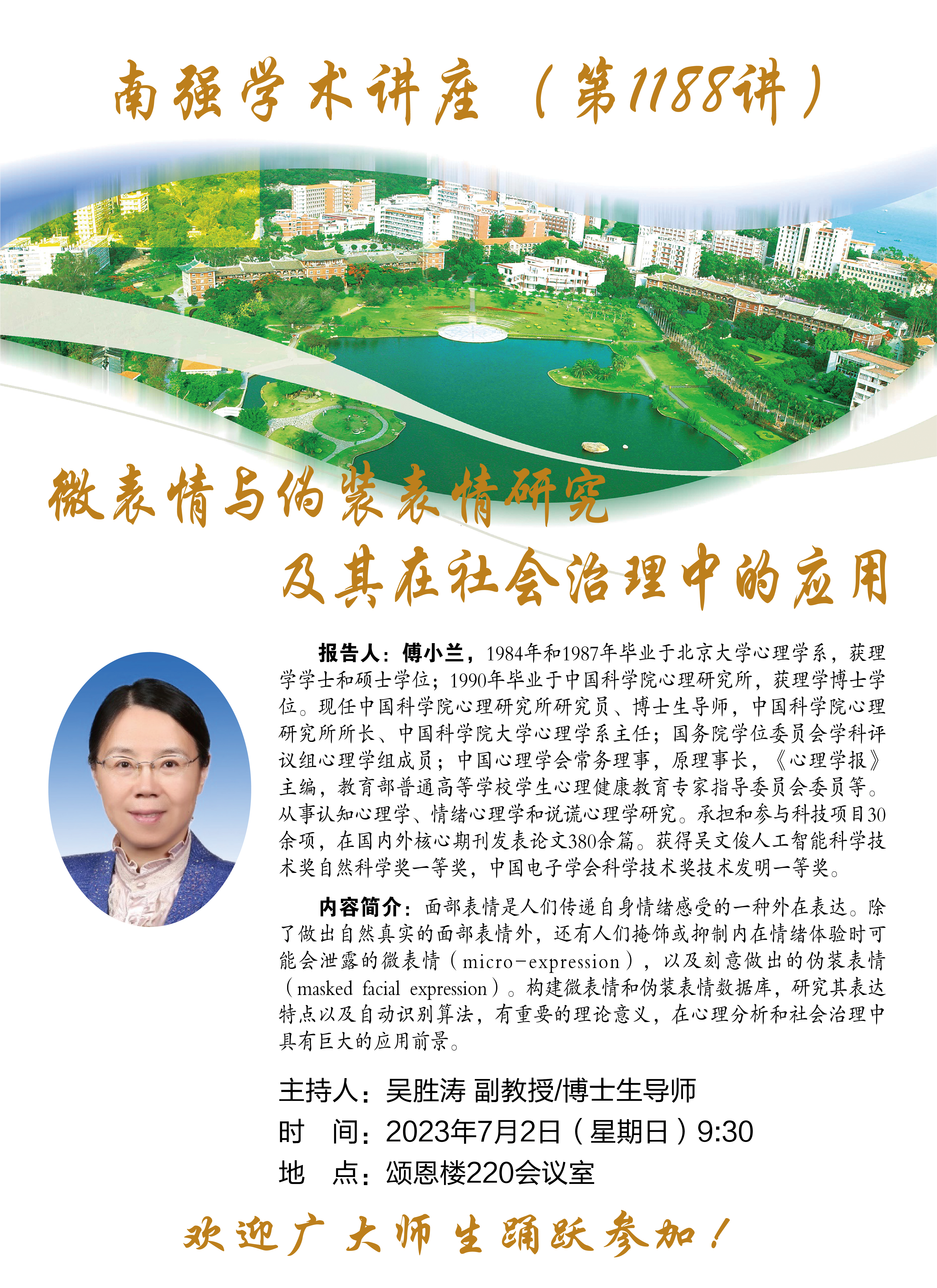 报告题目:微表情与伪装表情研究及其在社会治理中的应用