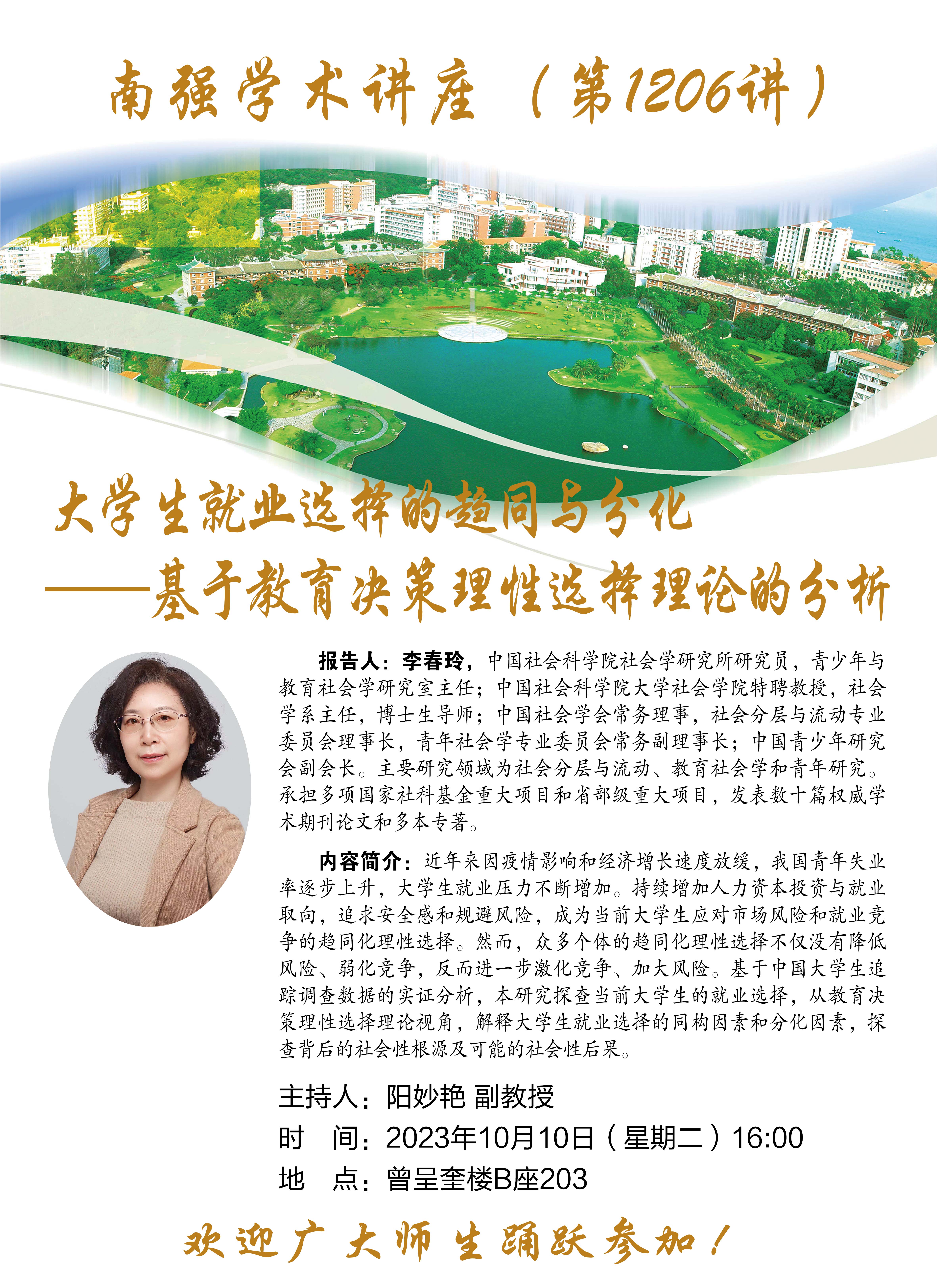 报告题目:大学生就业选择的趋同与分化——基于教育决策理性选择理论的分析
