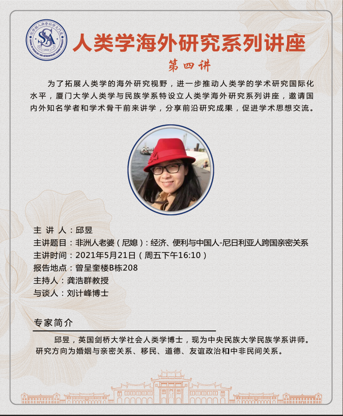 主讲人简介:邱昱,英国剑桥大学社会人类学博士,现为中央民族大学民族学系讲师。研究方向为婚姻与亲密关系、移民、道德、友谊政治和中非民间关系。