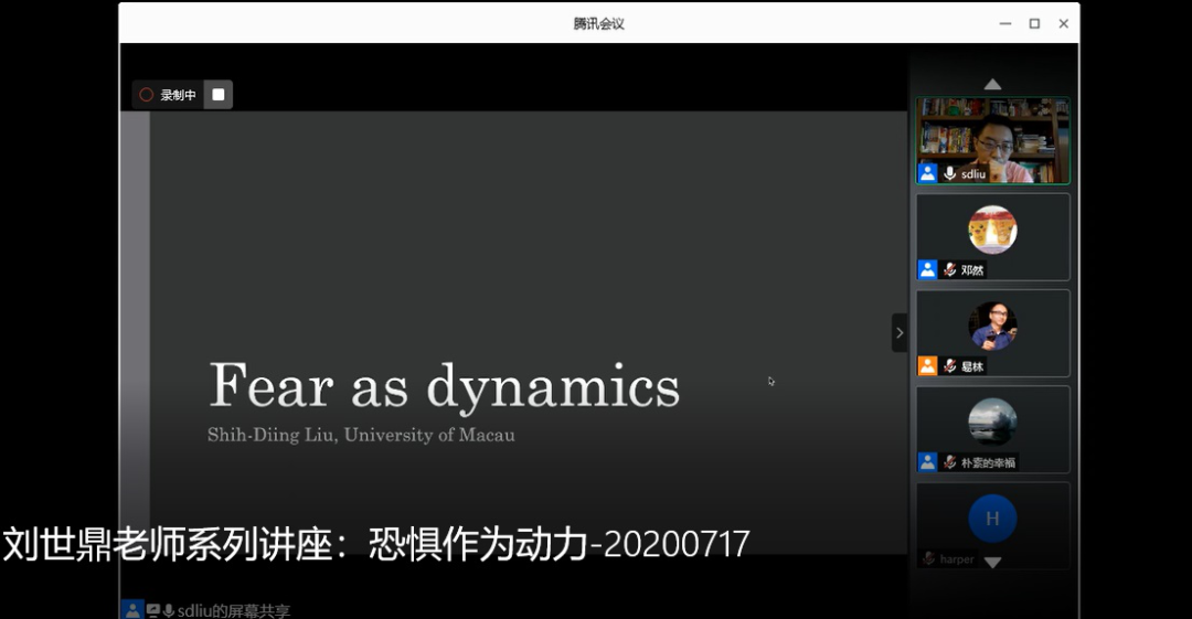 2020年7月17日上午,澳门大学社会科学学院传播系副系主任刘世鼎教授,在新太阳集团5493con“情绪与公共文化”系列讲座中发表了第四讲题为《恐惧作为动力》的线上学术演讲。新太阳集团5493con吴胜涛副教授主持了这场讲座。