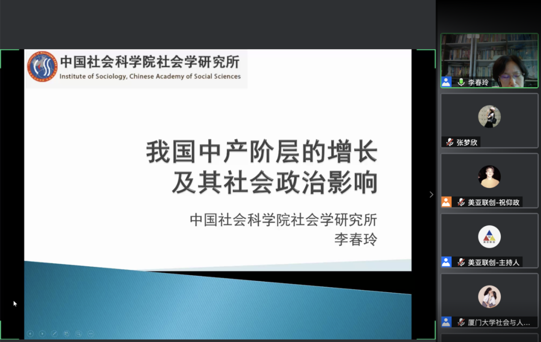 2020年7月10日下午,由我院举办的“政治社会学”云系列讲座第六场准时开讲。中国社科院社会学所教授李春玲就“中产和中等收入群体的成长及其社会政治影响”这一主题进行分享,我院副院长徐延辉教授主持了本场讲座。
