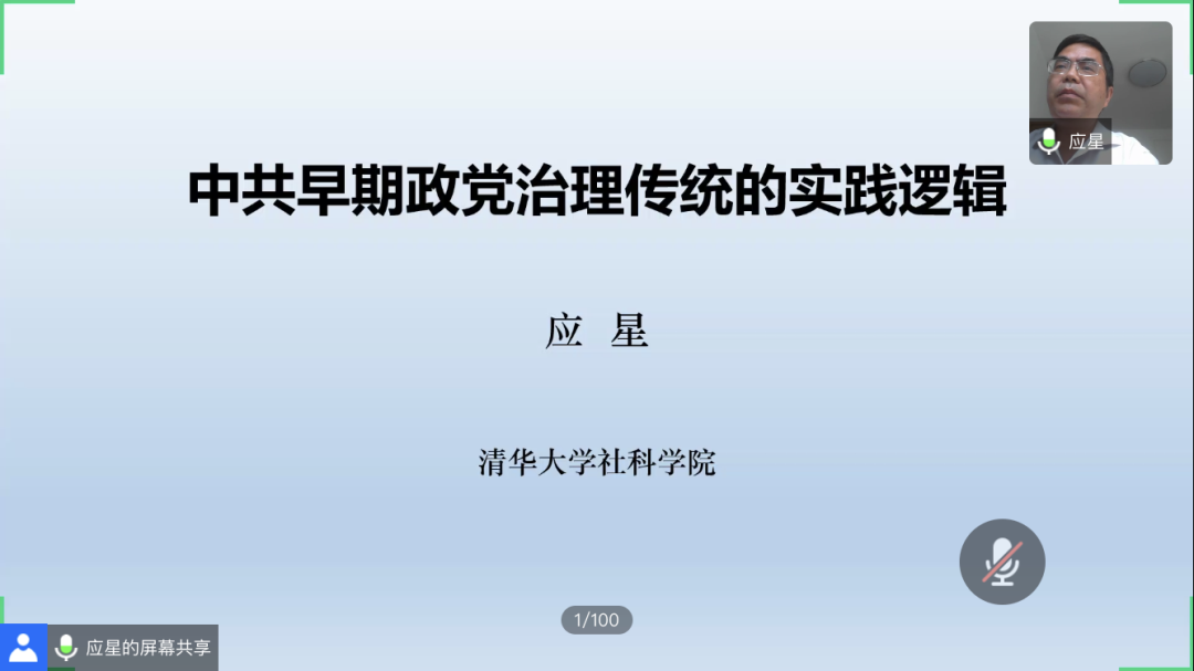 7月1日16点至18点,由我院举办的“政治社会学”云系列讲座第三场准时开讲。清华大学政治学系教授应星就“中共早期党政治理传统的实践逻辑”这一主题进行分享,我院社会学系系主任易林教授主持了本场讲座。