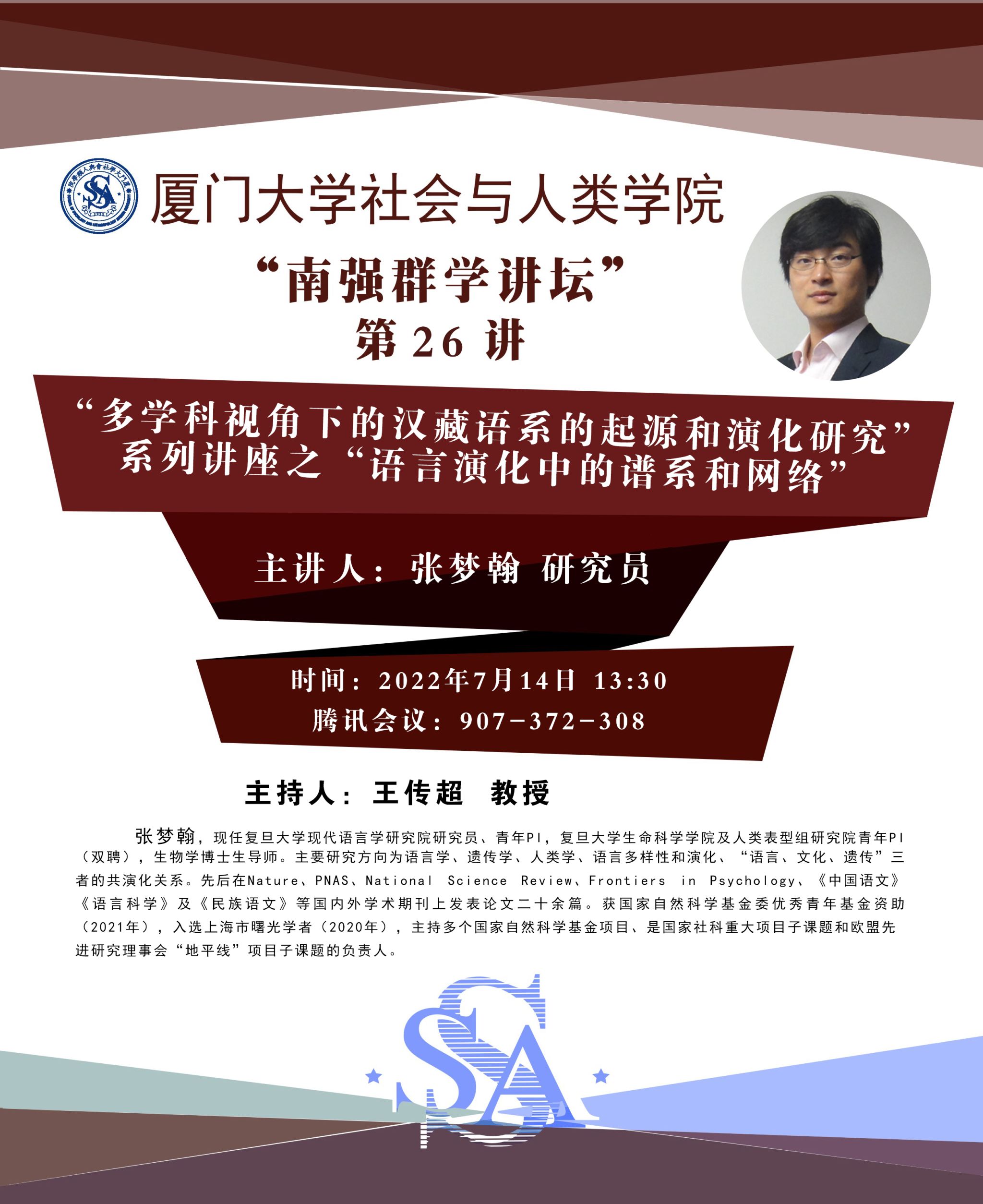 【南强群学讲坛】第26讲 “多学科视角下的汉藏语系的起源和演化研究”系列讲座之“语言演化中的谱系和网络”