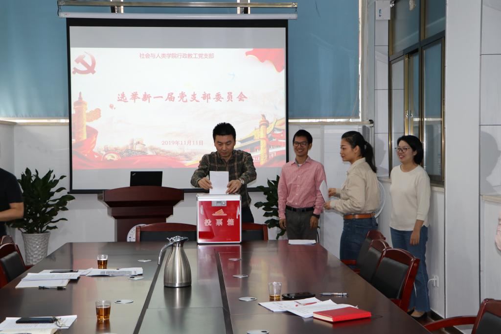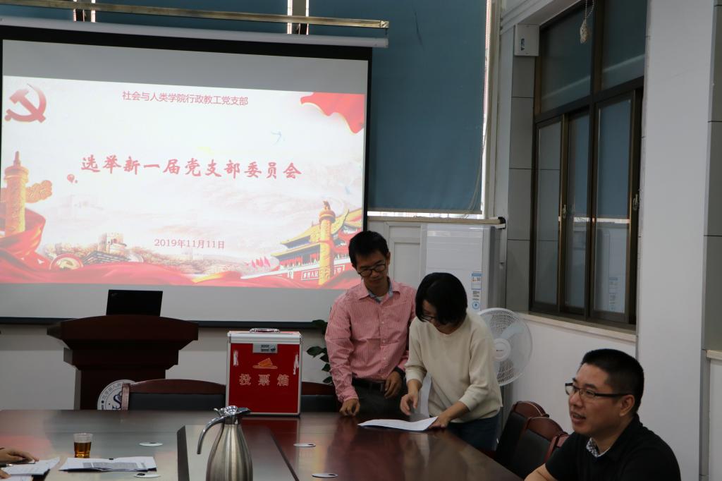 会议开始,毛毛同志宣读《中共社会与人类学院行政教工党支部委员会选举办法(草案)》《中共社会与人类学院行政教工党支部委员会委员候选人名单(草案)》和《监票人、计票人名单(草案)》,以上草案均由与会党员审议并表决通过