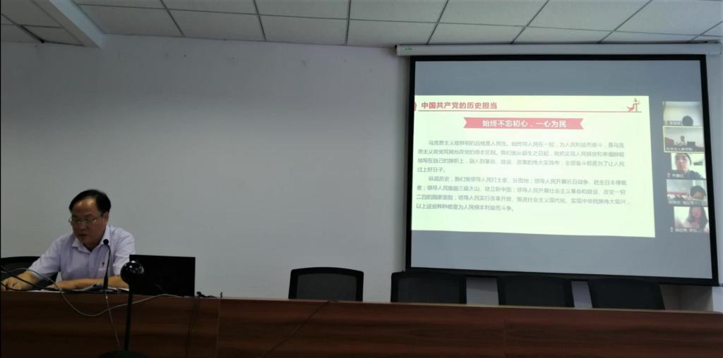 开班仪式伊始,学院党委书记谢银辉带领师生党员,面对鲜红的党旗,举起右拳,庄严宣誓。在铿锵有力的入党誓词回响中,学院党委党校首期党务工作培训班正式开班,陈夷作开班动员讲话。培训班第一讲由学院党委书记谢银辉作题为《从党史看中国共产党的历史担当》的党课。谢银辉带领大家重温中国共产党的峥嵘岁月与光辉历程,将中国共产党艰苦卓绝的奋斗史、波澜壮阔的革命史、可歌可泣的光荣史,以一个个感人肺腑的生动事例深入浅出地进行了讲解,与师生党员一同感受共产党人坚定的革命信仰与勇于担当的高贵品质。他强调,作为新时代共产党人,我们要永远保持建党时中国共产党人的奋斗精神,永远保持对人民的赤子之心;要在认真学习党史、新中国史的过程中,牢记党的初心和使命,在对历史的深入思考中,立足岗位做好现实工作,走好新时代的长征路,不断交出坚持和发展中国特色社会主义的合格答卷。