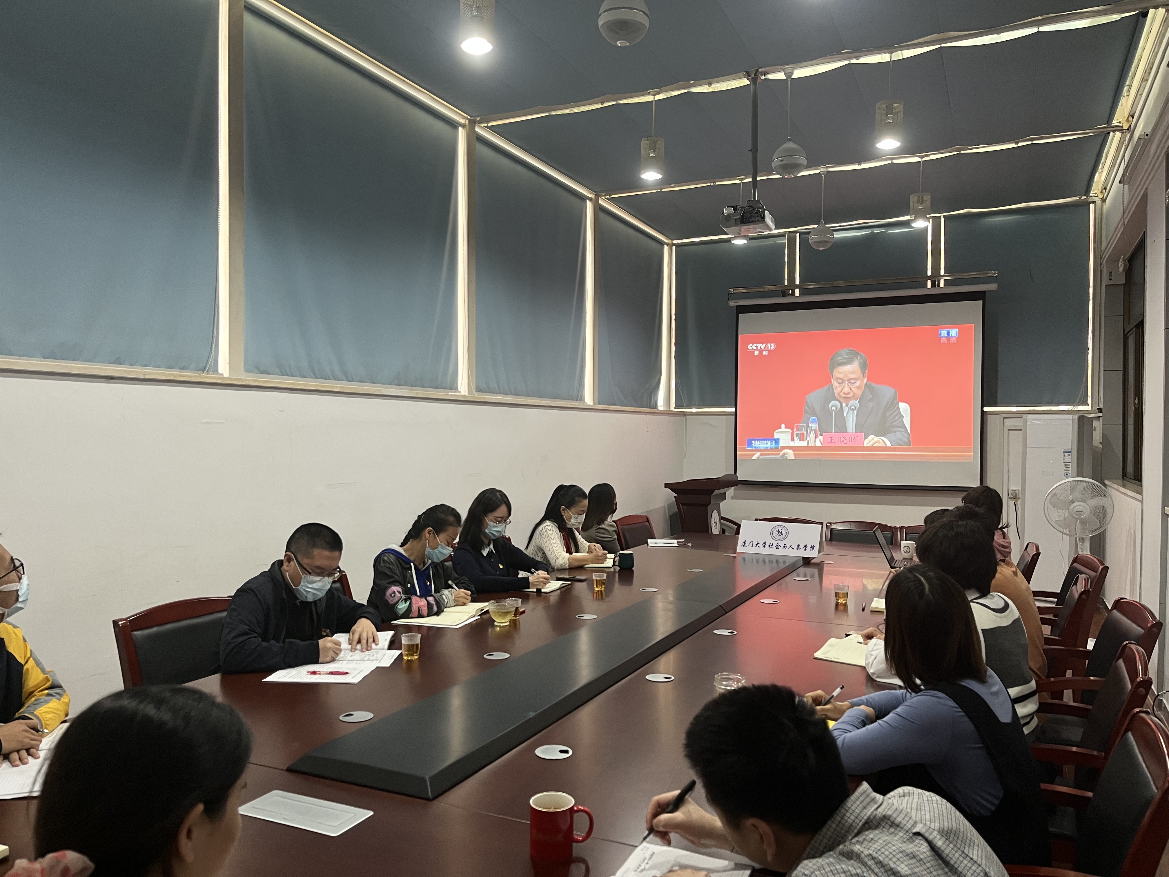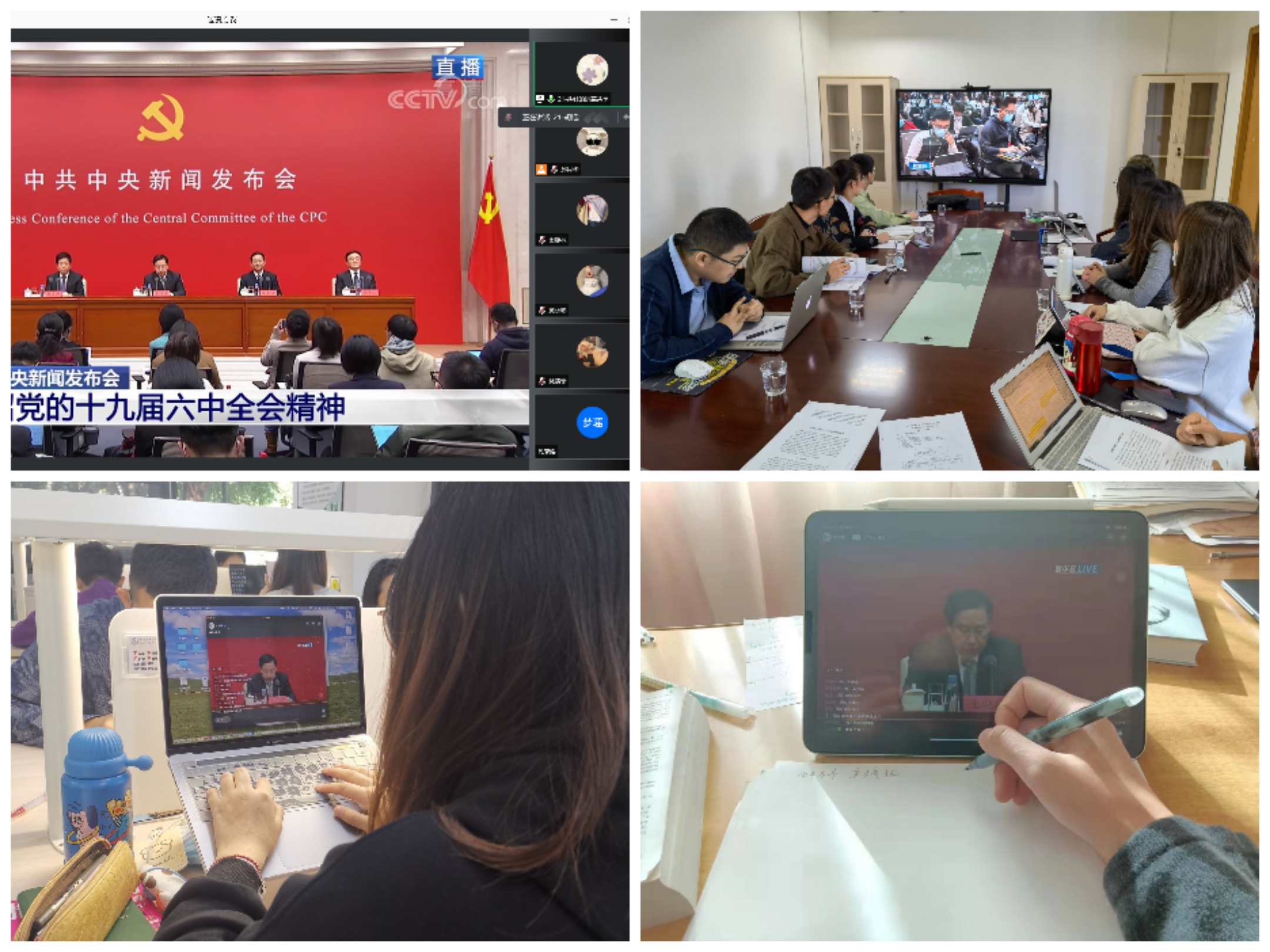 11月12日上午,学院师生党员群众一同观看党的十九届六中全会精神新闻发布会直播。学院师生对习近平总书记受中央政治局委托作的工作报告和全会通过的《中共中央关于党的百年奋斗重大成就和历史经验的决议》《关于召开党的第二十次全国代表大会的决议》反响热烈。