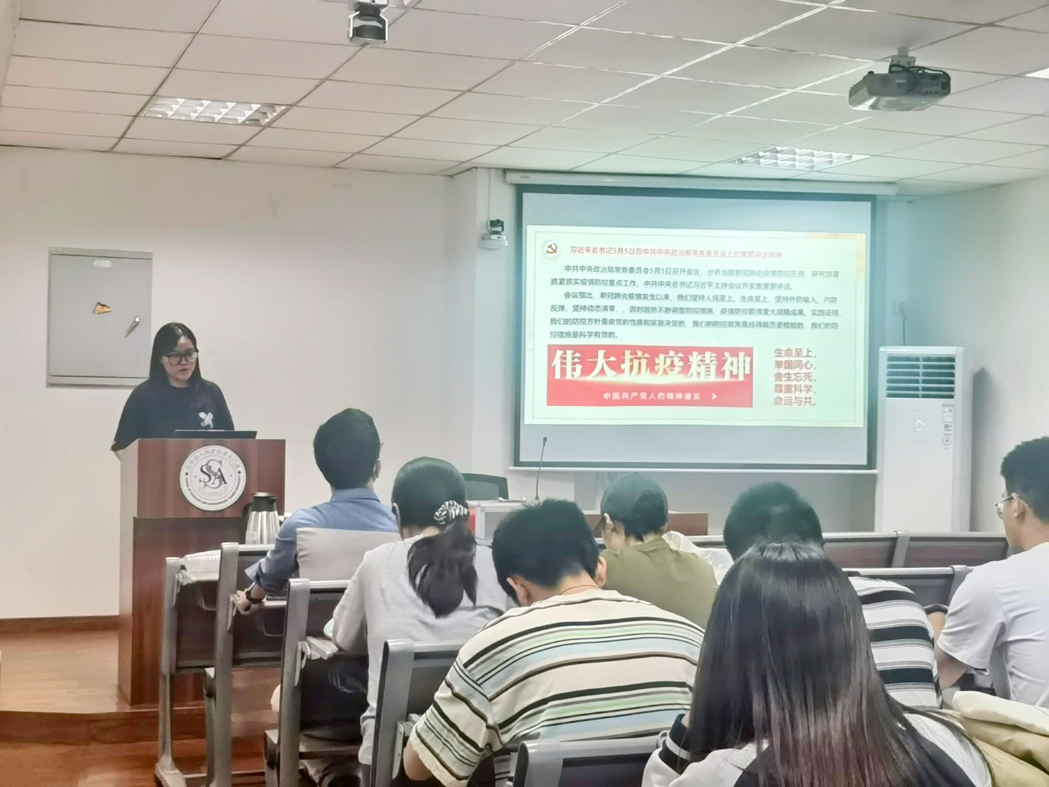 最后,邱月华带领大家学习习近平总书记5月5日在中共中央政治局常务委员会上的重要讲话精神,重温中国共产党人精神谱系中的伟大抗疫精神,支部书记石林伟进一步强调了疫情防控工作的重要性。