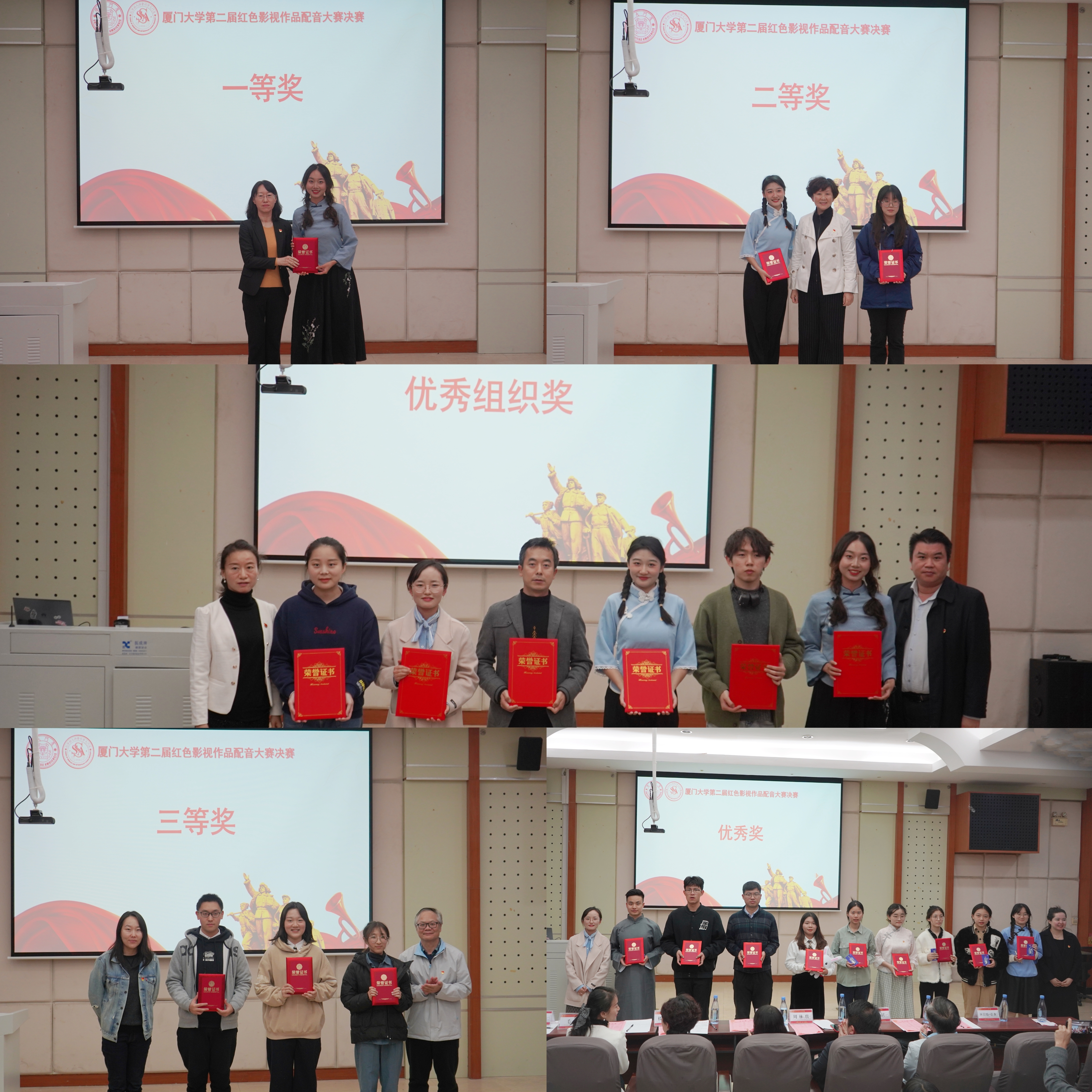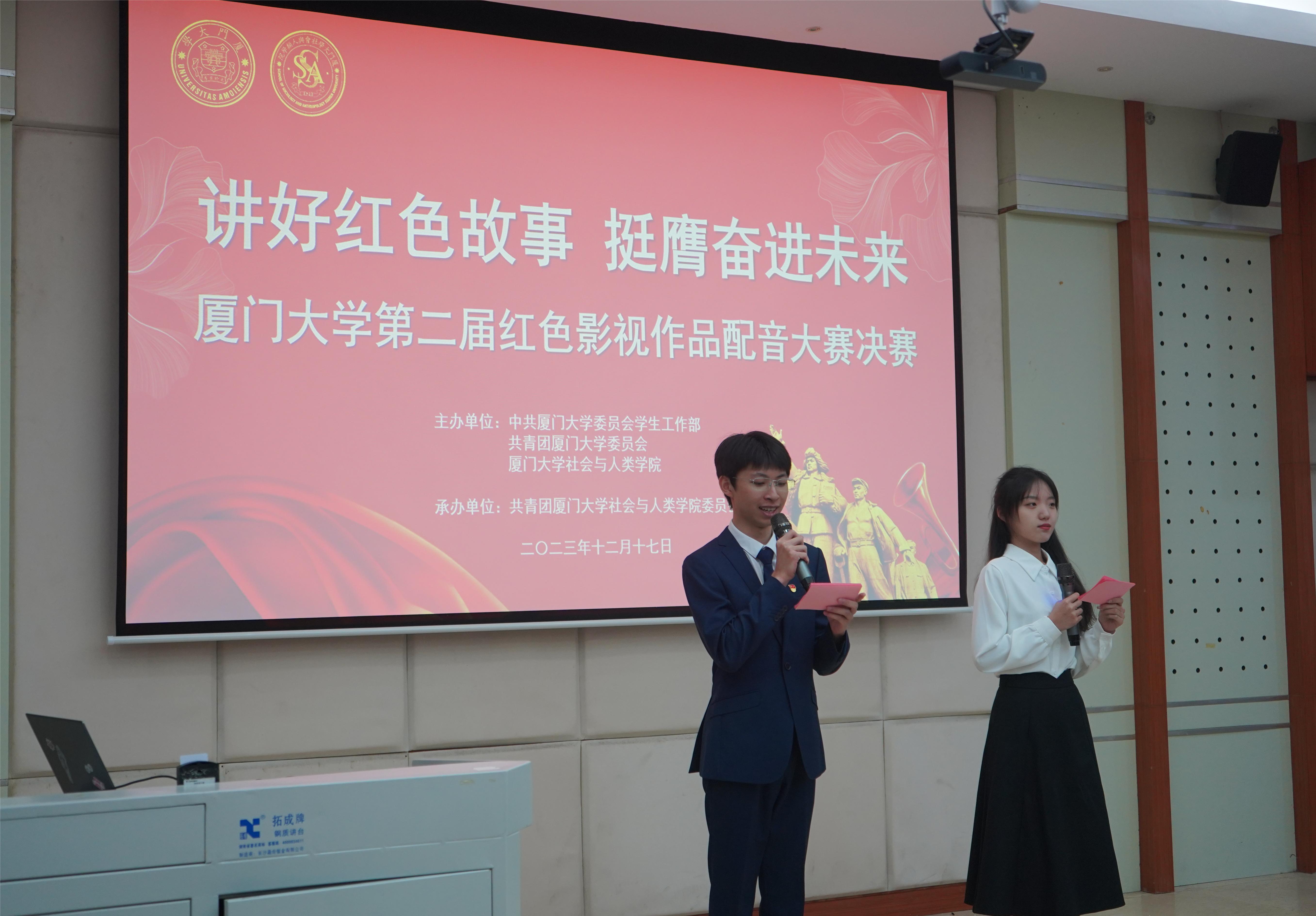 比赛中,参赛选手们“各显神通”,从片段选取、角色分配、情感投入、声音塑造等方面展现厦大学子对影视作品配音这一艺术表达形式的精妙巧思,同时带领全场重温红色故事中的经典片段,表达对党和国家的热爱之情。比赛过程中穿插设置“党史知识问答”“红歌知识问答”“红剧片段内容问答”三个互动环节,同学们热情高涨、踊跃参与,将现场的热烈气氛推向新的高度。