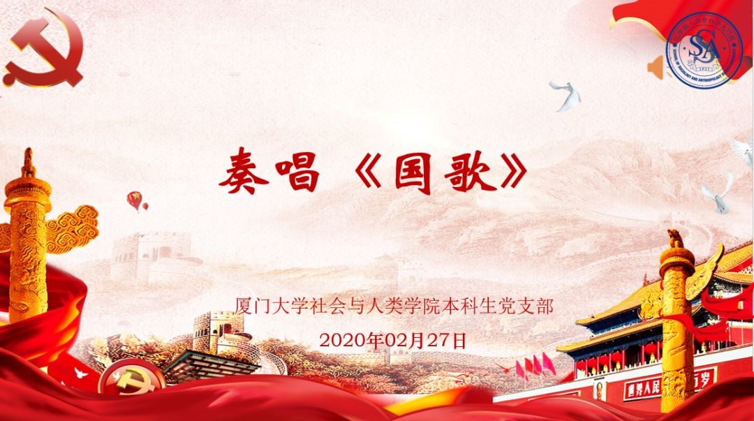 在这特殊的时期,社会与人类学院本科生党支部通过网络在线奏唱国歌。用这种特殊的方式教育学生党员感知中国力量,懂得担当大义。