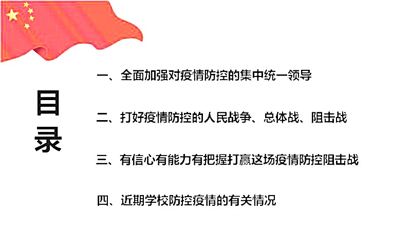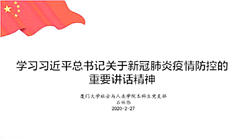 在嘹亮的国歌声中,本科生党支部组织生活会正式开始。这次疫情是对国家治理体系和治理能力的大考验,抗击疫情的号角吹响,一方有难、八方支援的互助赞歌立刻响彻神州大地。疫情防控的人民战争进一步让世界感受到了中国速度和中国力量。全国各地的医务工作者奔赴湖北,口罩生产商紧急复工,工地建设者不舍昼夜,交通运输部门严格防范……14亿中国人民联防联控,展现了国家治理体系的制度效能和制度威力。