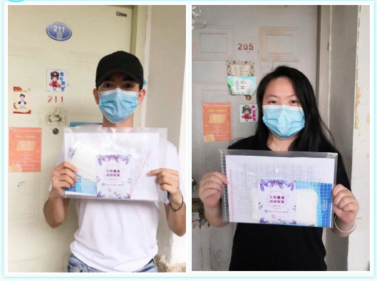 5月28日,师生志愿者分装防疫健康资料袋、张贴宿舍防疫门贴,为返校同学们备好防疫物资和安全指南。