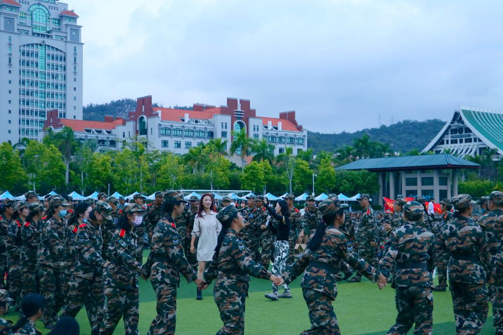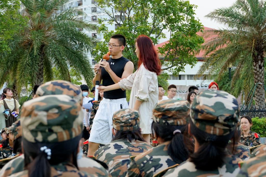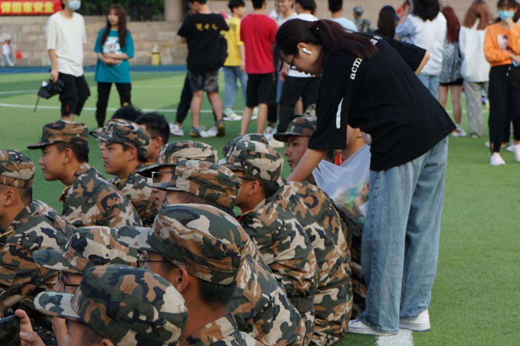 9月20日下午,院党委副书记陈夷老师、党委副书记毛毛老师、院团委书记石林伟老师、辅导员冉丽莎老师以及本科生团总支和学生会的学生干部们带着文艺节目、饮品零食以及满满的热情来到演武场,慰问正在军训中的2020级新生们。