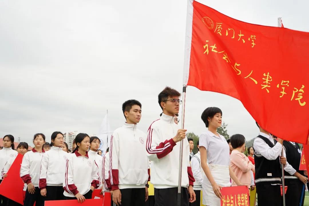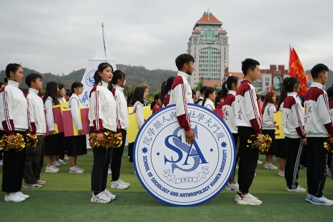 "社会人类,敢闯敢飞!协力争先,永不后退!"嘹亮有力的口号彰显着敢闯敢飞的决心,坚定炯炯的目光传递着永不后退的信念。高扬院旗,高举院徽,社会与人类学院将以昂扬的姿态和拼搏的精神在运动场上展现独特的风采!