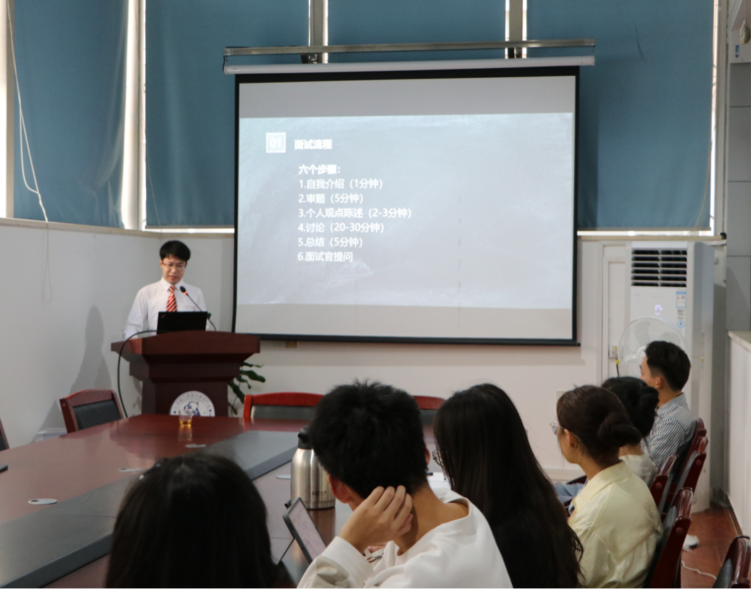 首先,现场通过一段视频,向大家展示了一个真实、完整的无领导小组面试流程,让同学们对面试过程有了较为直观的感受。