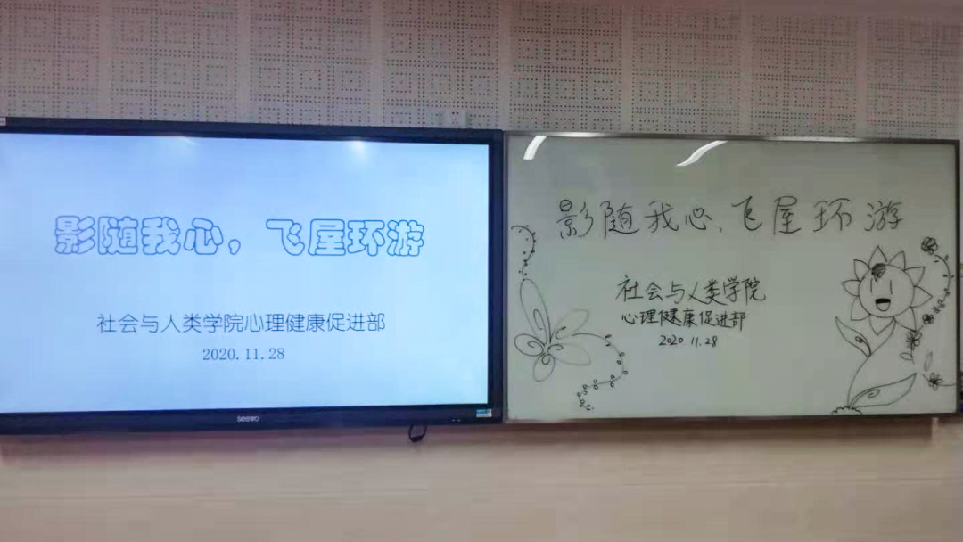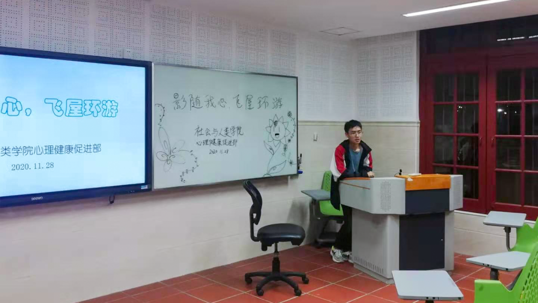 11月28日晚7点,我院心理健康促进部主办的观影活动在囊萤楼102室举行,活动由2019级本科生赵春和2020级本科生于沛廷共同主持,通过线下观影的方式邀大家共同观赏了动画影片《飞屋环游记》。