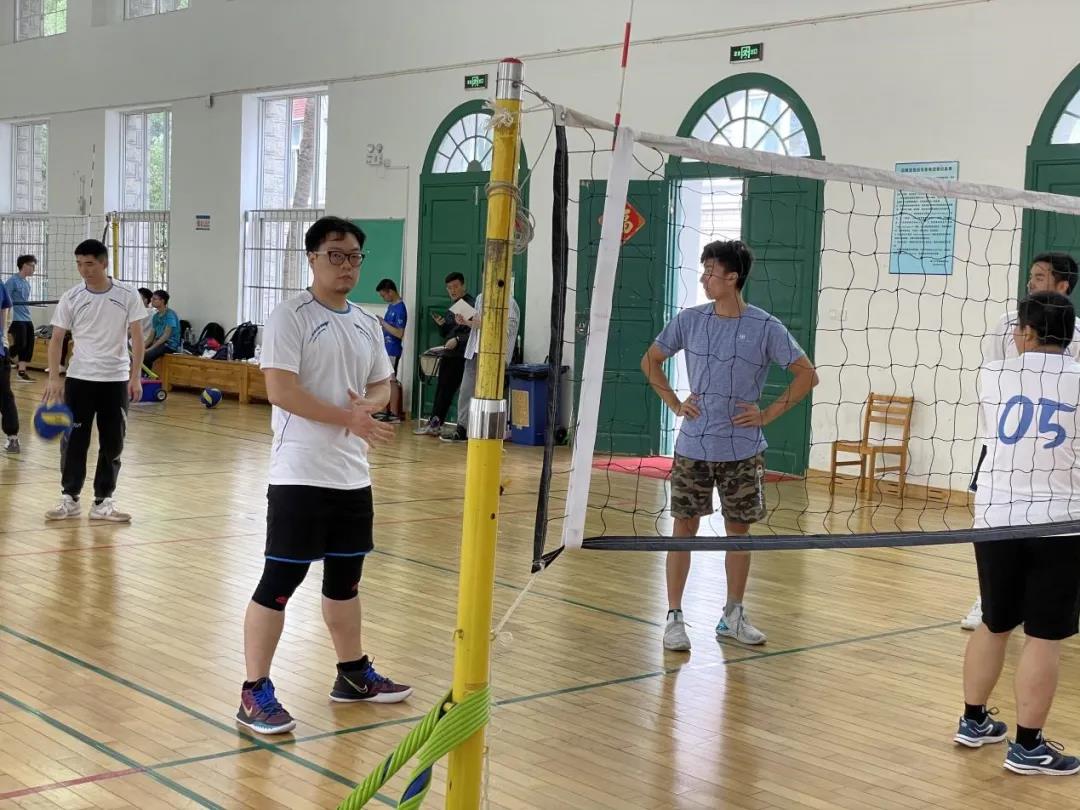我院男子气排球队由徐森艺、邱啸、林大均、吴宝红、阿热发提·依米提、吴传洪、赖东鹏、林天海、胡星灿出战。比赛为五人制,采用国家体育总局审定的最新气排球竞赛规则,三局两胜制,每局比赛(决胜局除外)先得21分并同时领先对手2分的队胜一局。