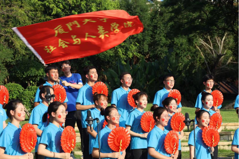 6月3日下午,我院合唱团在芙蓉湖畔圆形广场参与合唱节展演。和煦的风拂过芙蓉湖的层层涟漪,吹动同学们的发梢。那一抹抹青春的蓝色,与湛蓝的天空和波光粼粼的湖水相映,那一张张充满活力的笑颜在明媚的阳光下绽放,唱响青春红曲,唱响时代乐章。