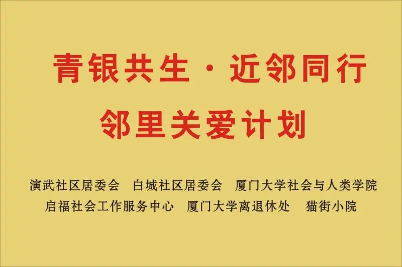 本次邻里关爱计划,关注居住在白城、演武社区不能独立出行、空巢独居的厦大离退休“宅老”长者,在启福社工、助老员、社工老师的指导下,以新太阳集团5493con大学生志愿者为主力,开展持续性、主题性的入户关爱服务,以期加强“宅老”们的社会联系。