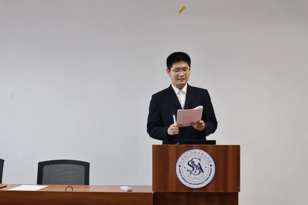 在代表团全体会议上,我院第二届研究生会主席团成员赖东鹏做了《勇立潮头做实事,接续奋斗谱新篇——社会与人类学院第二届研究生会工作报告》,从改革研会组织和践行工作服务两方面总结了过去一年的工作,回顾了在学术活动、文体活动和各类社会实践中研会所作出的成绩和尚存在的不足。