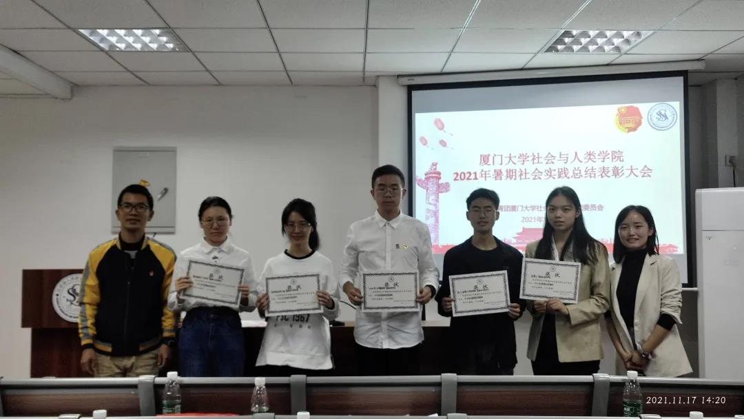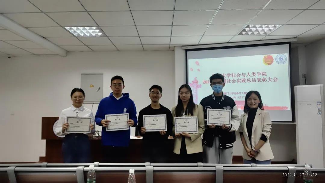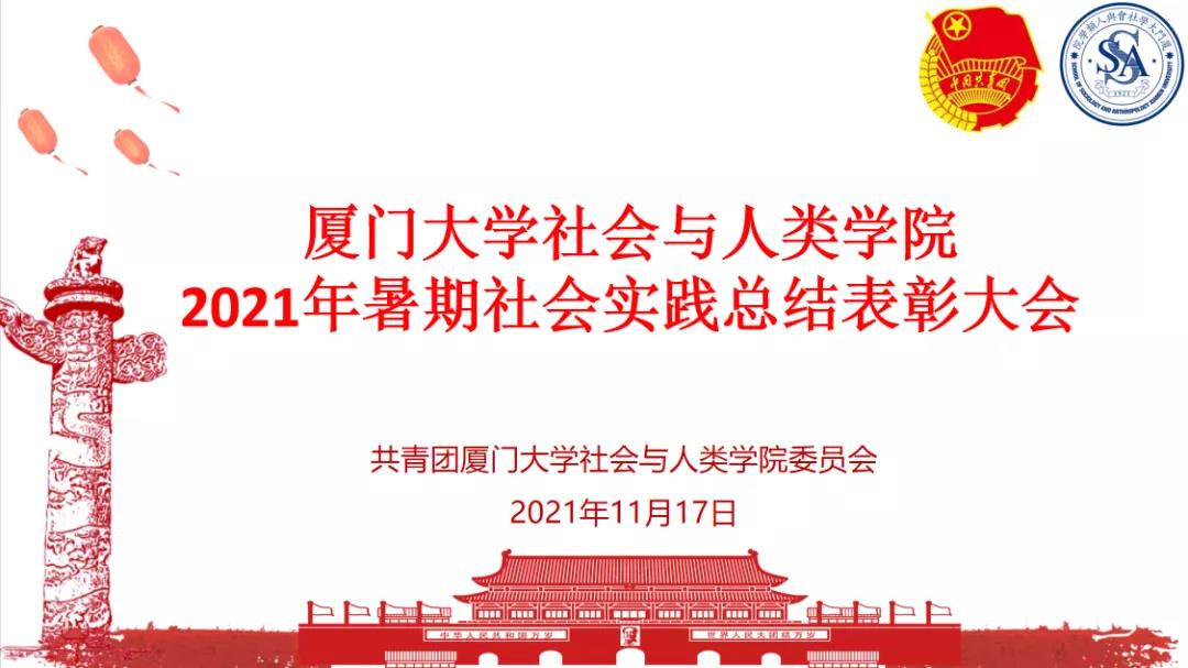 2021年11月17日,我院“永远跟党走 奋进新时代”2021年暑期社会实践总结表彰大会在曾呈奎楼B205举行,以表彰今年暑期社会实践中优秀团队及个人,展现社会与人类学院学子风采。学院团委书记石林伟、本科生辅导员冉丽莎、第二届学生会主席团成员张金波、第二届本科团总支书记妥雅轩、第二届团总支实践部负责人安琪及本次社会实践团队成员代表参加。活动由本科生团总支实践部廖芫倩同学主持。