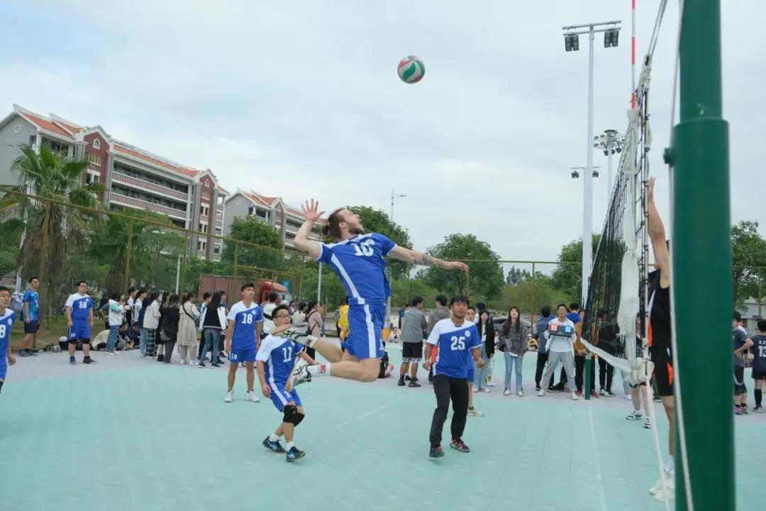 我院男子排球队由吴宝红、邱啸、徐森艺、西蒙、林大均、计羽翔、赖东鹏、阿热发提·依米提、张隽直、艾力木拉提·艾力出战。