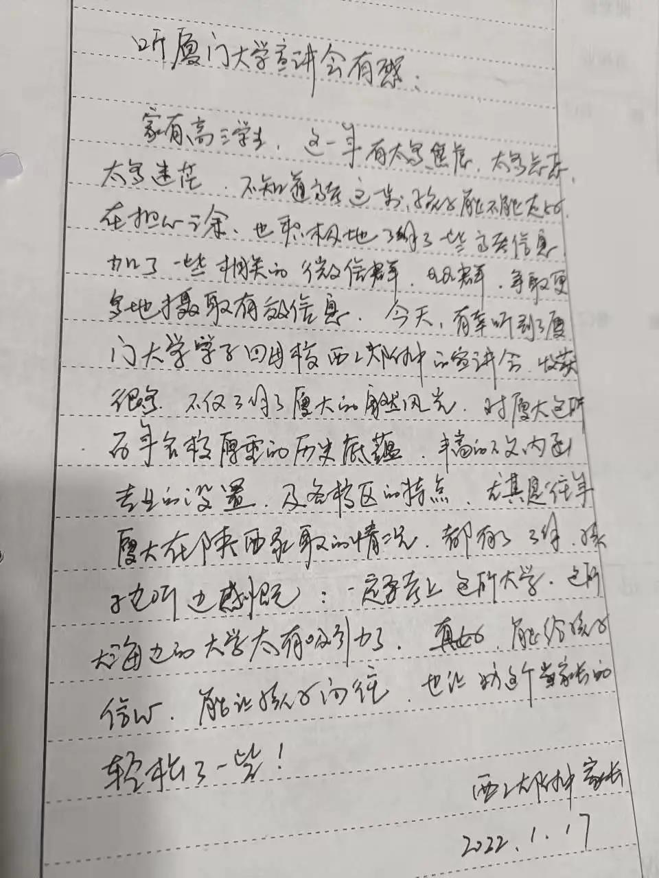 很高兴我能够成为一道微光,代表厦大向学弟学妹们发出这样一份动人的邀请。