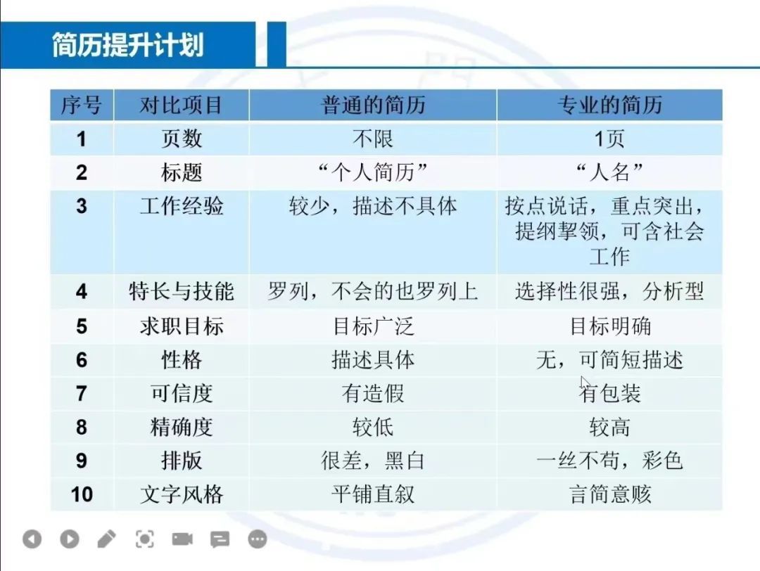 在讲解简历制作技巧时,占老师指出简历应该具备针对性,要找出自己与职位的匹配项,并阐明自身的竞争优势。她的讲解细致入微,结合自身丰富的工作经验向同学们分享了在应聘不同类型企业时适用的简历,以具体的简历案例说明了必要且关键的注意事项。