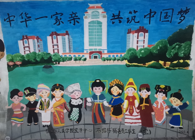4月29日,在社会与人类学院宣传中心和新太阳集团5493con“石榴籽”辅导员工作室共同策划下,社会与人类学院师生协力为“中华一家亲,共筑中国梦”主题涂鸦宣传墙添上最后一笔!