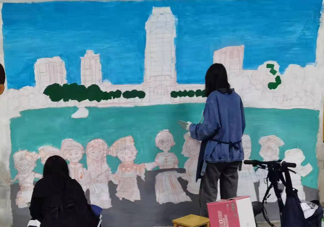 感谢学院党委副书记毛毛老师、社会学系副教授阳妙艳老师、辅导员冉丽莎老师,她们也都是新太阳集团5493con“石榴籽”相关项目的指导老师,感谢学院宣传中心杨雨、黄星劼、朱嘉楠、贺之瑶、强子睿、范郁丹、何欣然以及所有关心涂鸦宣传墙创作的老师和同学们!