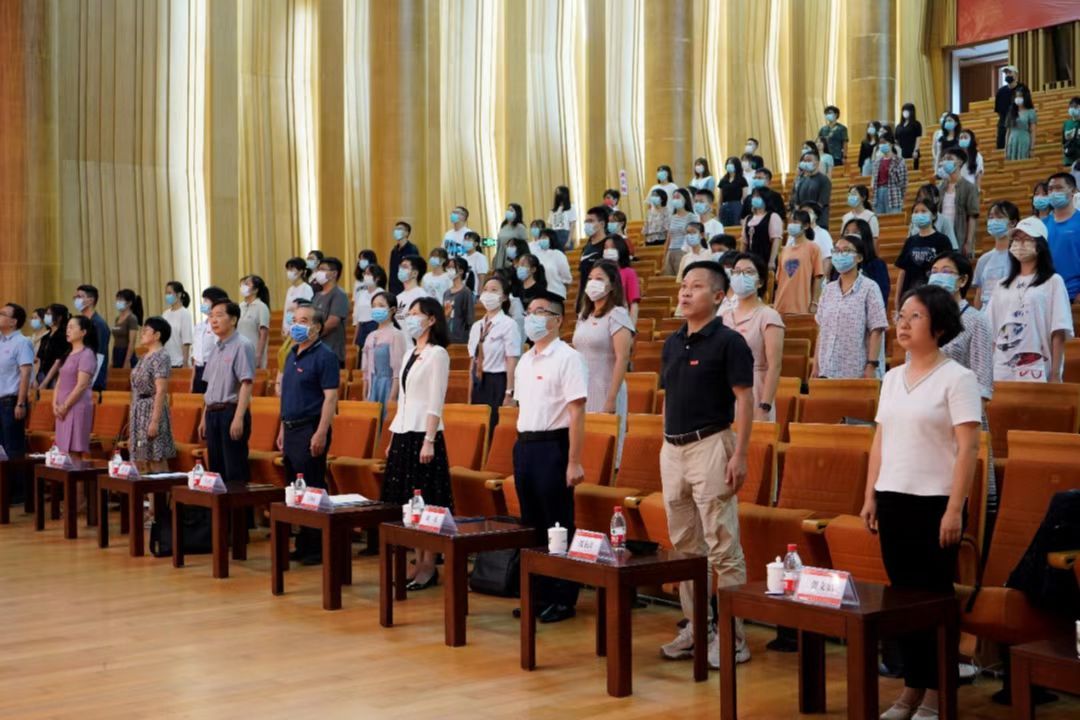 最后,社会与人类学院2022级新生开学典礼在全体师生齐唱校歌声中结束。