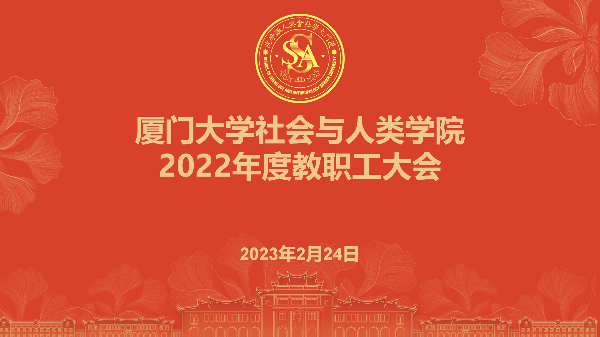 2023年2月24日下午,社会与人类学院2022年度教职工大会在曾呈奎楼B栋203教室顺利举行。学院党委书记王晓丽、院长胡荣及全院教职工出席会议。会议由党委副书记毛毛主持。