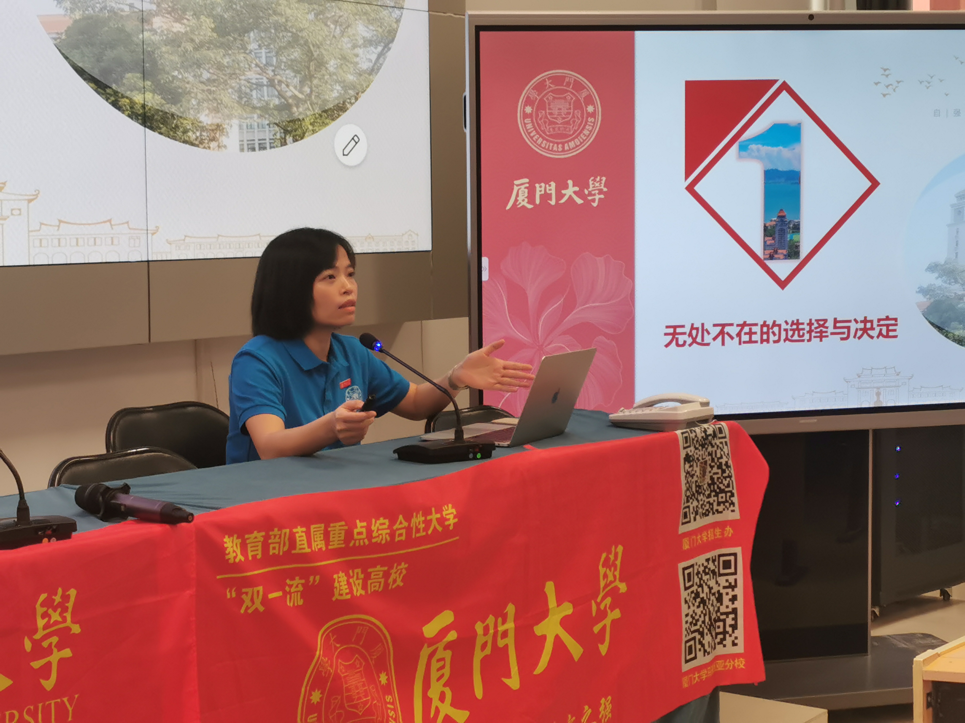 杨凌燕根据两所学校需求,作题为“高中生生涯规划:如何做决定”的讲座。她结合生动详实的案例,从增加自我与专业知识、改善不合理的信念、调整情绪心态以及采取积极行动等方面与学生分享如何做决定,讲座现场掌声不断。