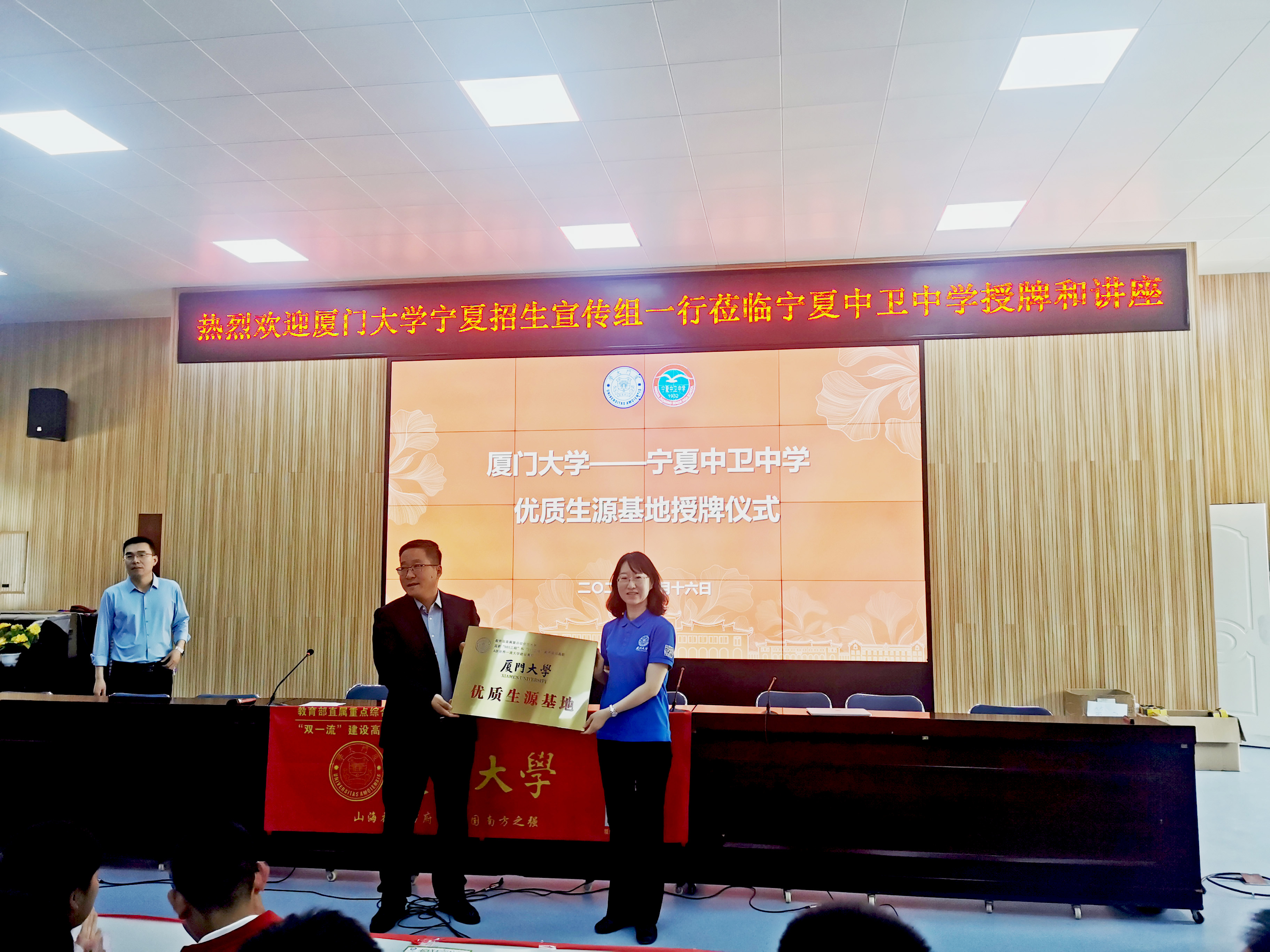 招生宣传工作组分别在两所中学举办“新太阳集团5493con优质生源基地”授牌仪式,并与两所中学有关负责人和老师就新太阳集团5493con办学情况、生源特点、招生政策等进行交流。