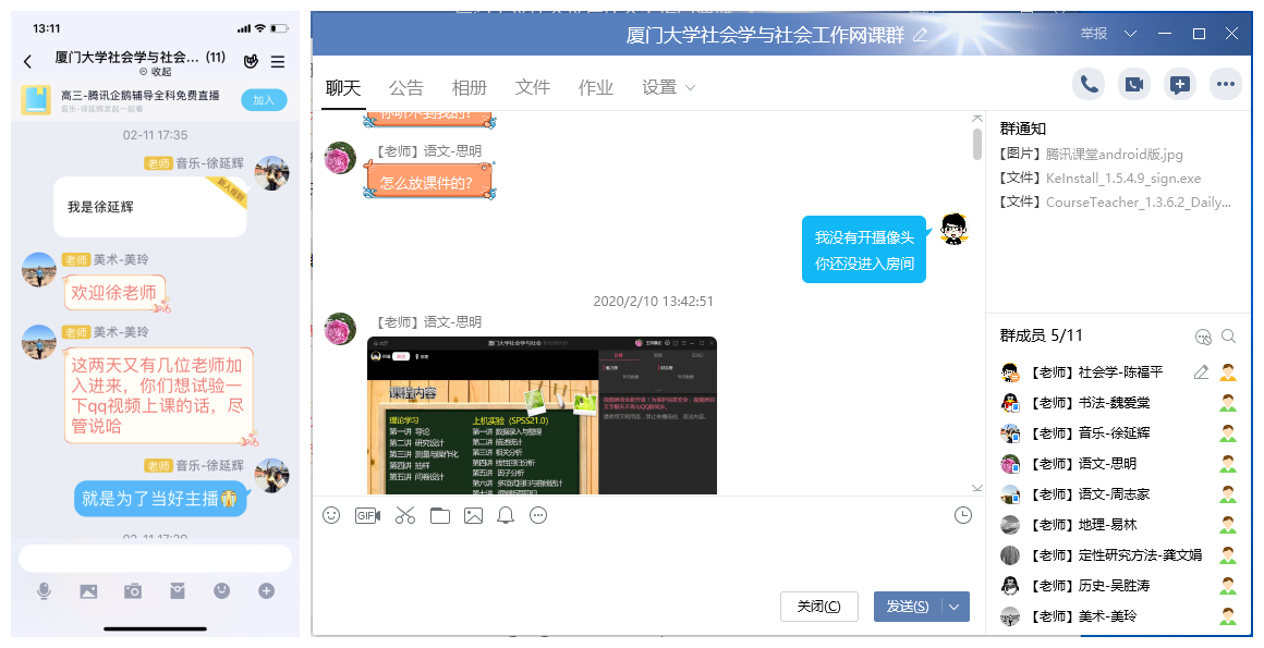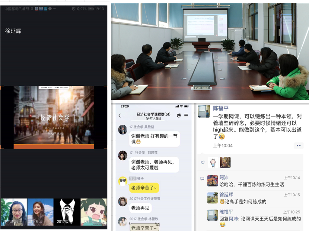 我院教师充分利用线上教学优势,以信息技术与教育教学深度融合的教与学改革创新,推进学习方式变革;在教师适应zoom、腾讯会议、钉钉等在线直播平台期间,教学管理人员“云共享”教学资料方便教师查阅学习;教师间互相帮助,分享资源,甚至全家总动员提供技术保障;分管教学工作的副院长徐延辉教授总是第一时间回应教师问题,对线上授课的细节给予提示,老师们自发组建了网课群进行网课技术的学习分享,并提前一周进行三次课堂教学模拟和功能测试,确保“技术保障立响应,准备工作均落实”。陈福平教授表示“熟悉工具和网上授课的环境后,才能知道网课哪些内容可以和线下教学相同,哪些需要根据网上授课的特点调整授课内容”。确实,新的教学方式带来的授课环境不稳定、师生互动的便利性下降,教师实时获取学生反馈的难度加大,教师们就需要调整授课内容,需要用更多精彩的内容吸引学生的注意力,大家普遍表示网上授课所需准备的时间更久,最近为了备好课,经常要熬夜到凌晨2点、3点。