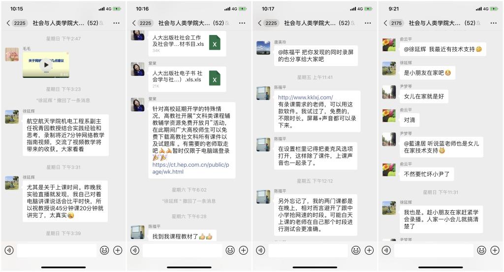 非常时期,我院组建了78个课程群,教学口和学工口一起发力,共同引导督促院内外学生入群学习,努力确保课程、教师和学生100%入群;直播课程全录播,每门直播课程均安排1-2位同学进行录播,保障境外学生及网络不畅同学的学习需求,确保“课程门门都落实,学生一个不落下”。