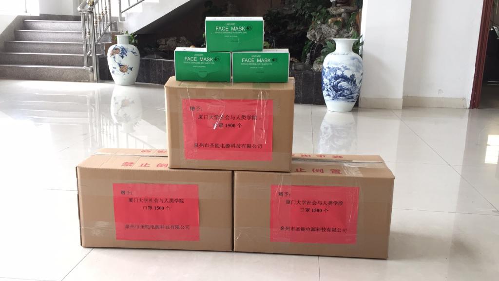在医用物资极其紧缺时期,积极拓宽采购渠道,紧急购买口罩、酒精、温度计等物资。此外,爱心企业泉州市圣能电源科技有限公司向学院无偿捐赠1500只口罩。学院对企业在灾难面前履行社会责任的义行善举表示衷心感谢,叮嘱学院有关人员对社会友好人士捐赠的物资物品妥善保管、合理使用,及时向有需要的师生发放,为全院师生的安全与健康保驾护航。