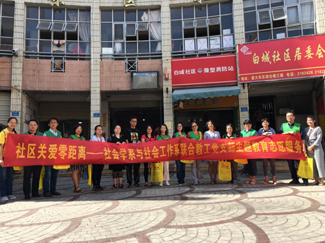 2019年11月4日上午,学院社会学系与社会工作系教工联合党支部与白城社区居委会、启福社会工作服务中心共同开展“不忘初心、牢记使命”主题教育之“社区关爱零距离”志愿服务。支部党员深入学校所在的白城社区,了解学校部分退休教师生活状况,参与社区困难居民探访、陪伴等志愿服务工作,增强党员教师的党性修养、社会责任感和使命感。