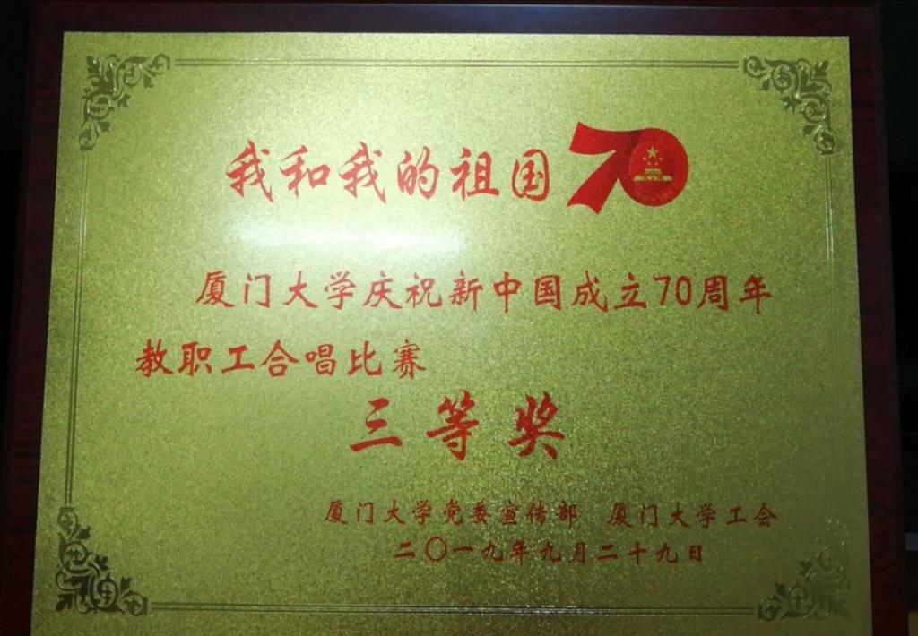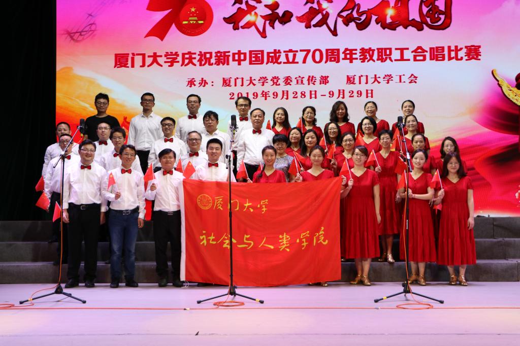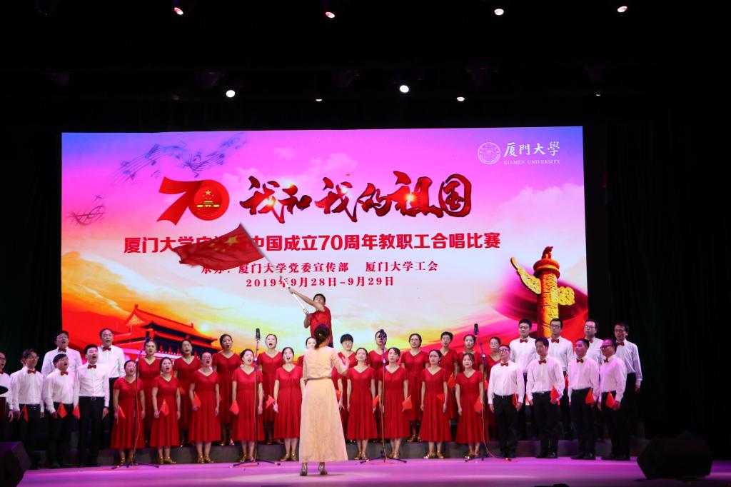 2019年9月28日-29日,新太阳集团5493con庆祝中华人民共和国成立70周年“我和我的祖国”主题合唱比赛在建南大礼堂隆重举行。我院教工深情演唱的《红星歌》、《我的祖国》两首曲目,用斗志昂扬的精神面貌、简约喜庆的服装造型、富有创意的队形变化、配合默契的高低声部、洪亮优美的音色,震撼全场,荣获三等奖,展现出了我院上下一心、团结一致、欣欣向荣的风采。