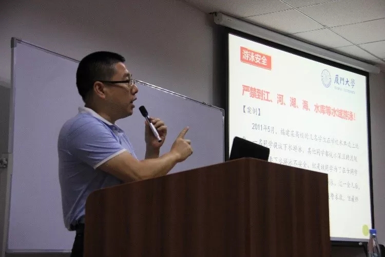 陈夷副书记希望家长配合学校做好新生安全教育,强调了游泳安全、消防安全、人身安全、财产安全、防台风、防诈骗、交通安全等事项。