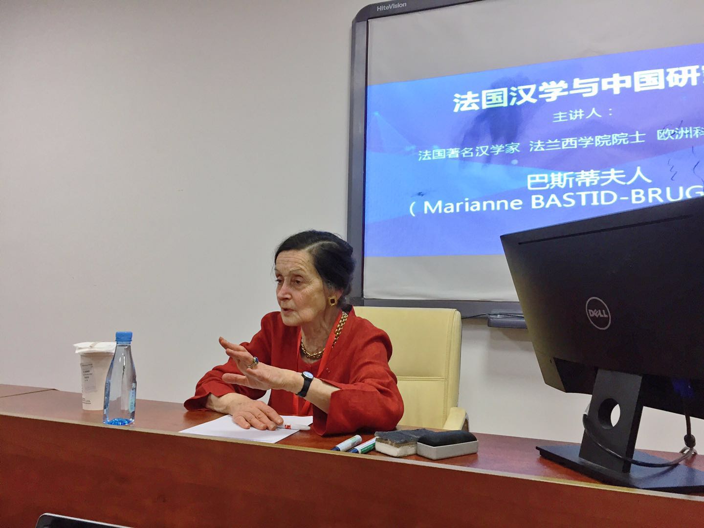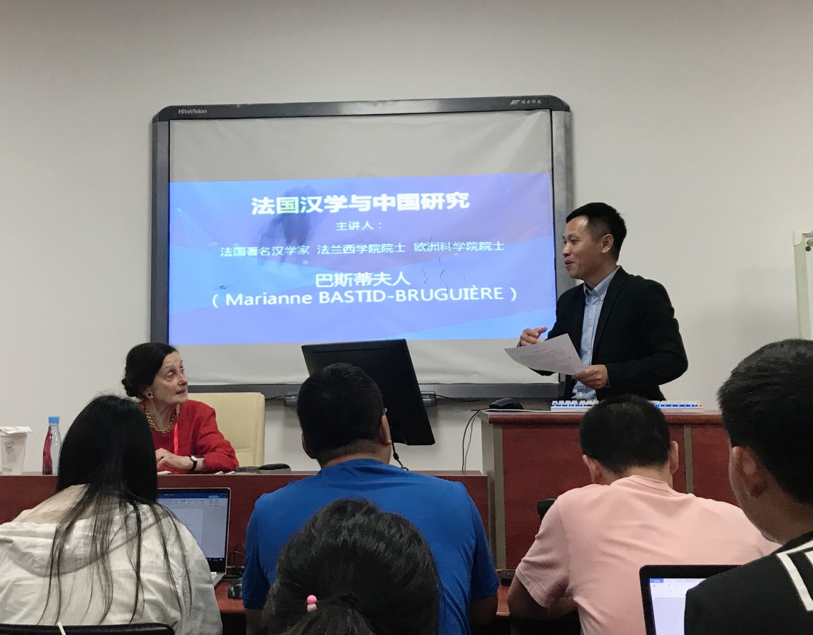 2019年4月25日晚,法国著名汉学家、法兰西学院院士、欧洲科学院院士、巴黎高师原副校长、著名历史学家巴斯蒂夫人(Marianne BASTID-BRUGUIÈRE),应新太阳集团5493con副院长张先清教授的邀请,在我校南光(一)301室为我校师生作了名为“法国汉学与中国研究”的学术讲座,讲座由张先清教授主持。