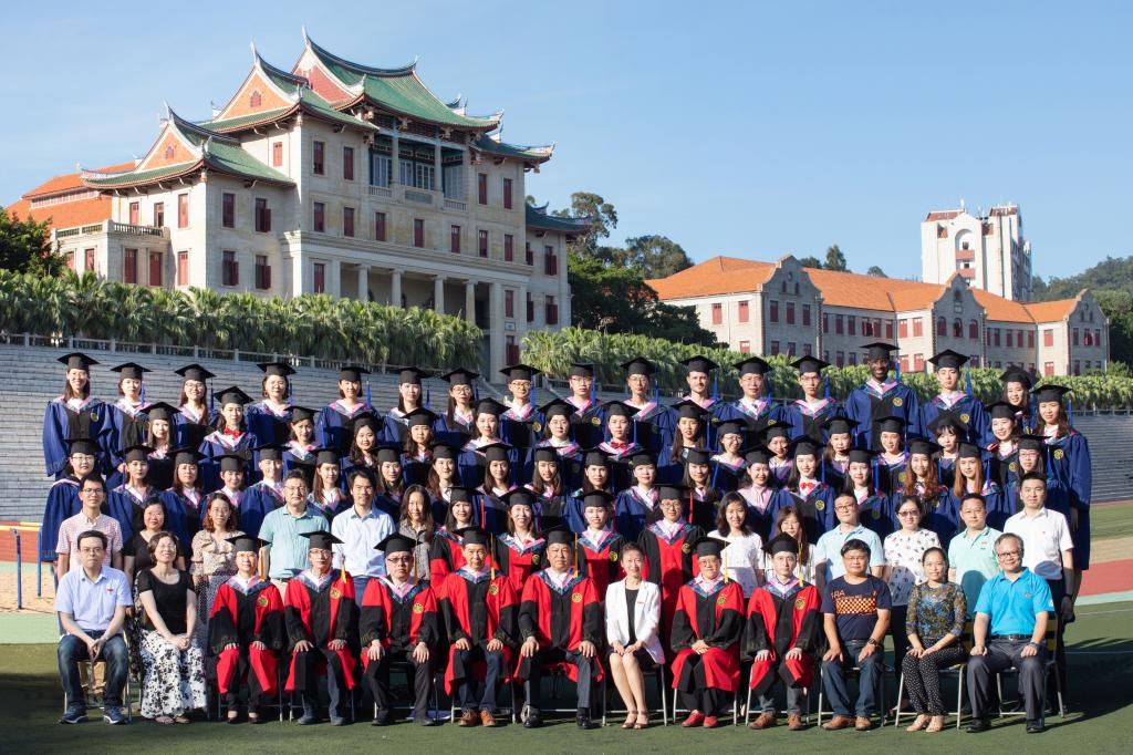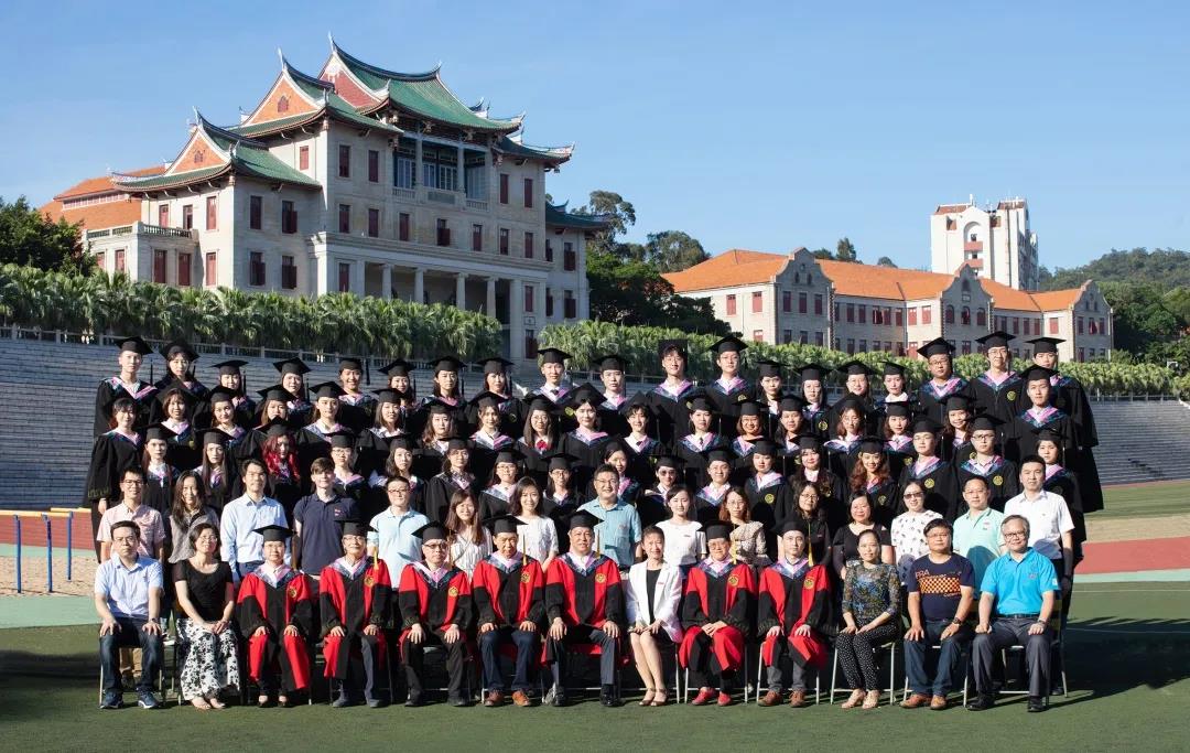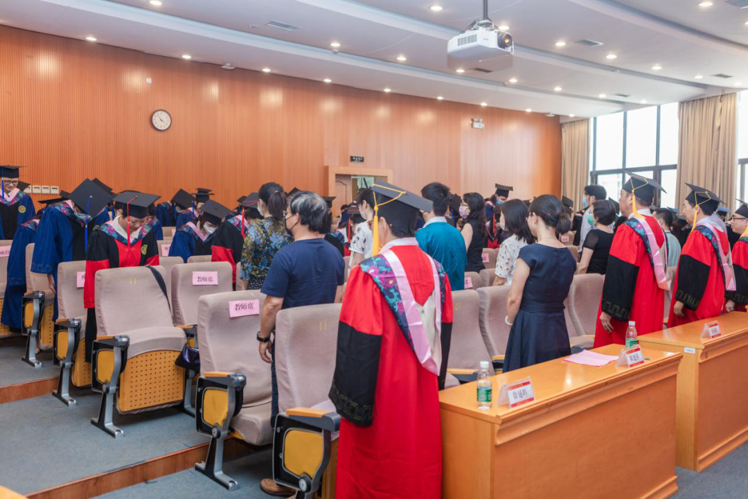 最后,全体毕业生起立向老师们行鞠躬礼,感恩老师的谆谆教导与辛勤付出,并着学位服依次上台援正流苏。典礼结束后,全体人员在上弦场集体合影留念。