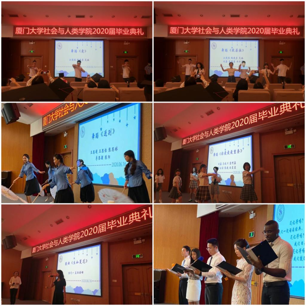 典礼开始前,同学们精心准备了节目,两段欢快的舞曲《爱》和《欧若拉》,是对师生情、同窗情最浪漫的表白;一段不舍的《送别》,是对凤凰花、芙蓉木最后的留恋;在厦园的日子,《生如夏花》;临别之际,《难说再见》。通过特殊的方式表达对母校和母院的深情。