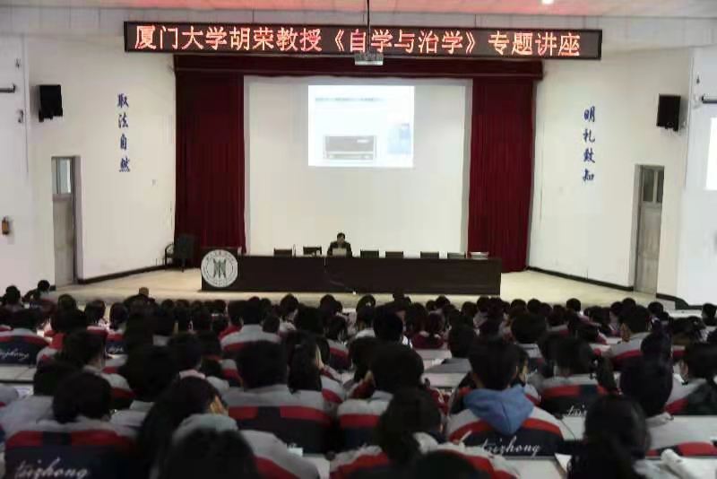 2021年2月2日下午,我院胡荣教授在浙江省泰顺中学科技楼报告厅为广大学子开展《自学与治学》专题讲座。讲座由泰顺中学校长陈立蔚主持。