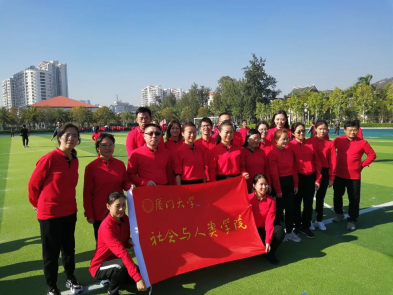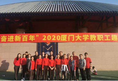 在健身活动启动仪式上,全体老师跟着节奏的律动跳起广播操。尽管已经十二月末,厦门的太阳依旧炎热,我院的老师们仍坚持以饱满的热情、规范整齐的动作完成每一次伸展和跳跃,将全民健身、快乐运动的追求落到实处。红衣是似火的热情,阔步是昂扬的姿态,演武场的阳光定格我院优秀教职工们神采飞扬的时刻。