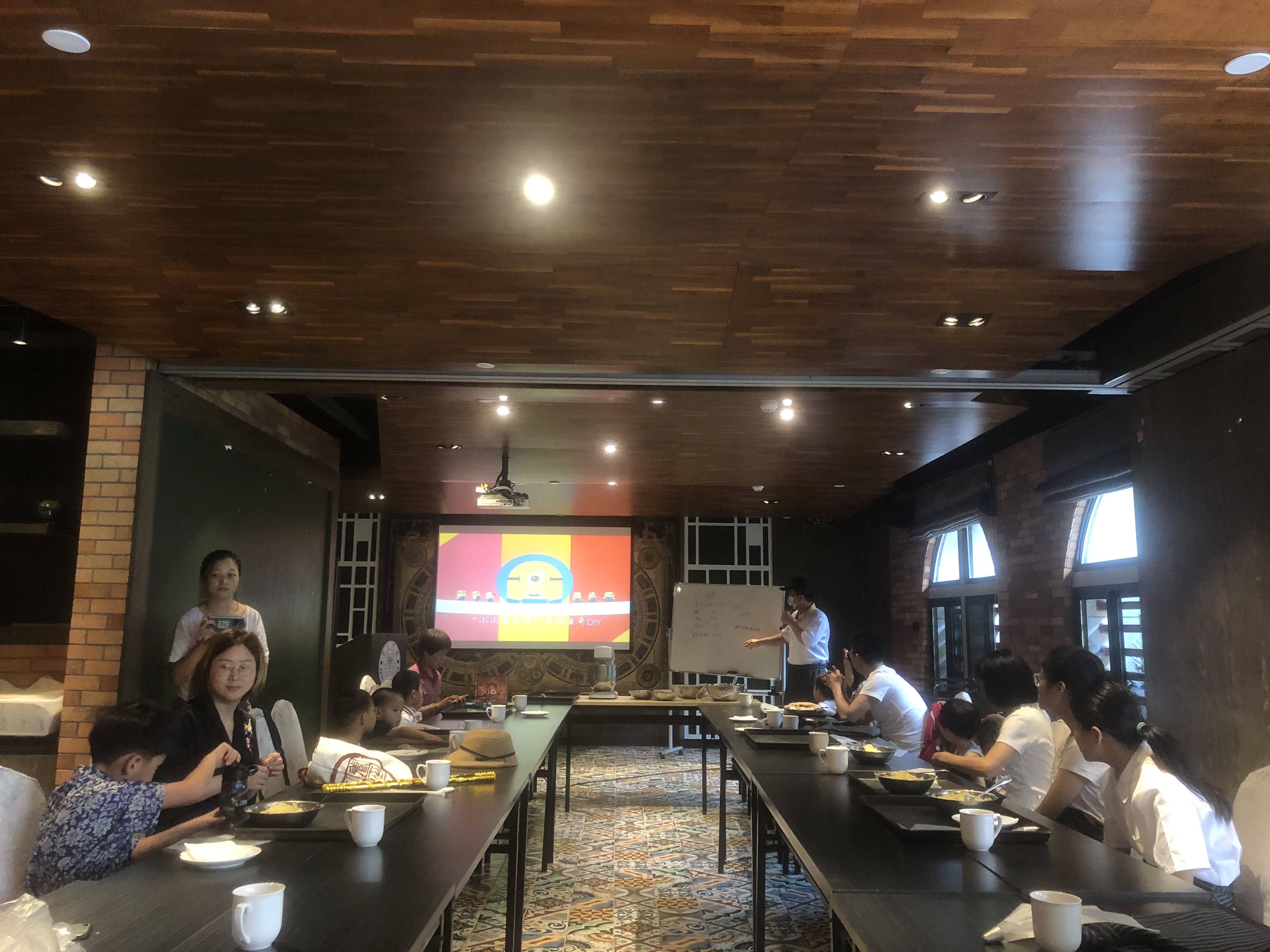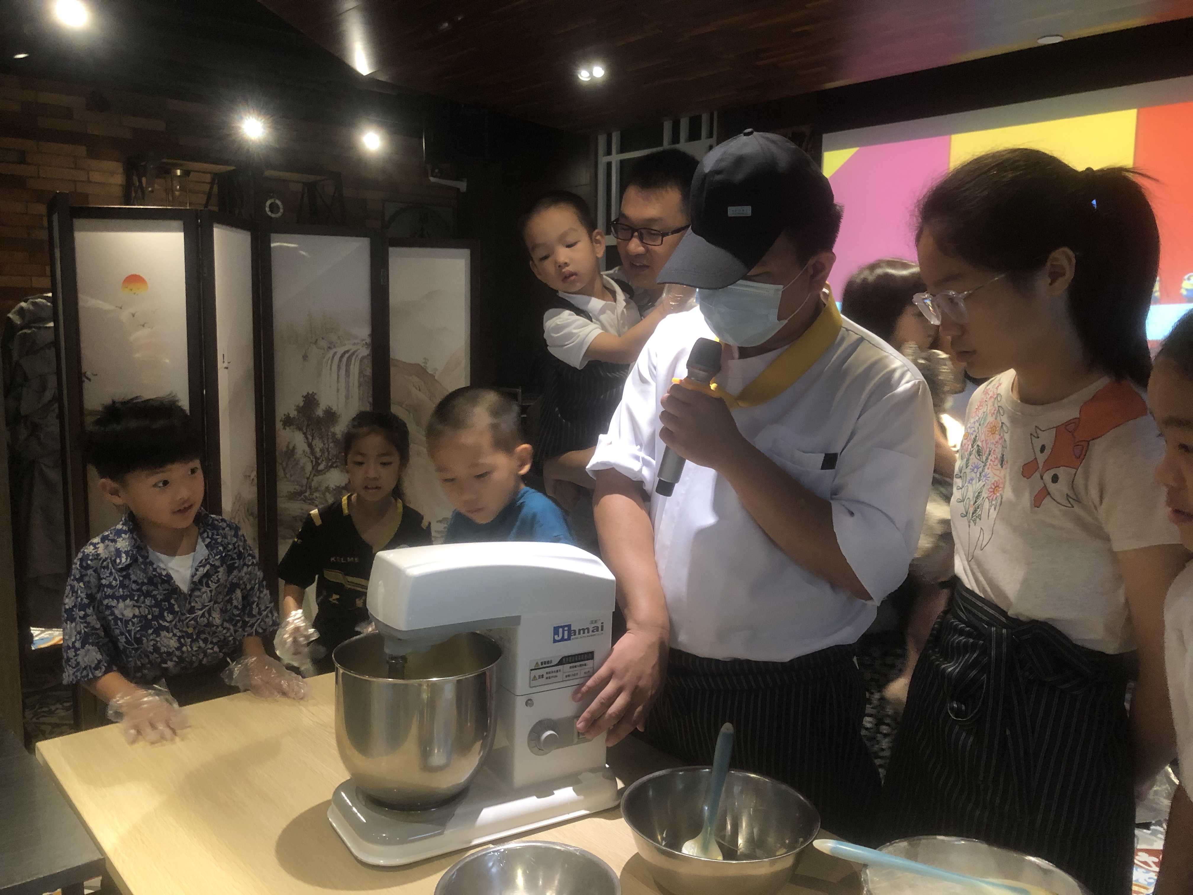 活动开始,大小朋友们围绕着西点师学习制作西点,大小朋友都很认真听讲哦!