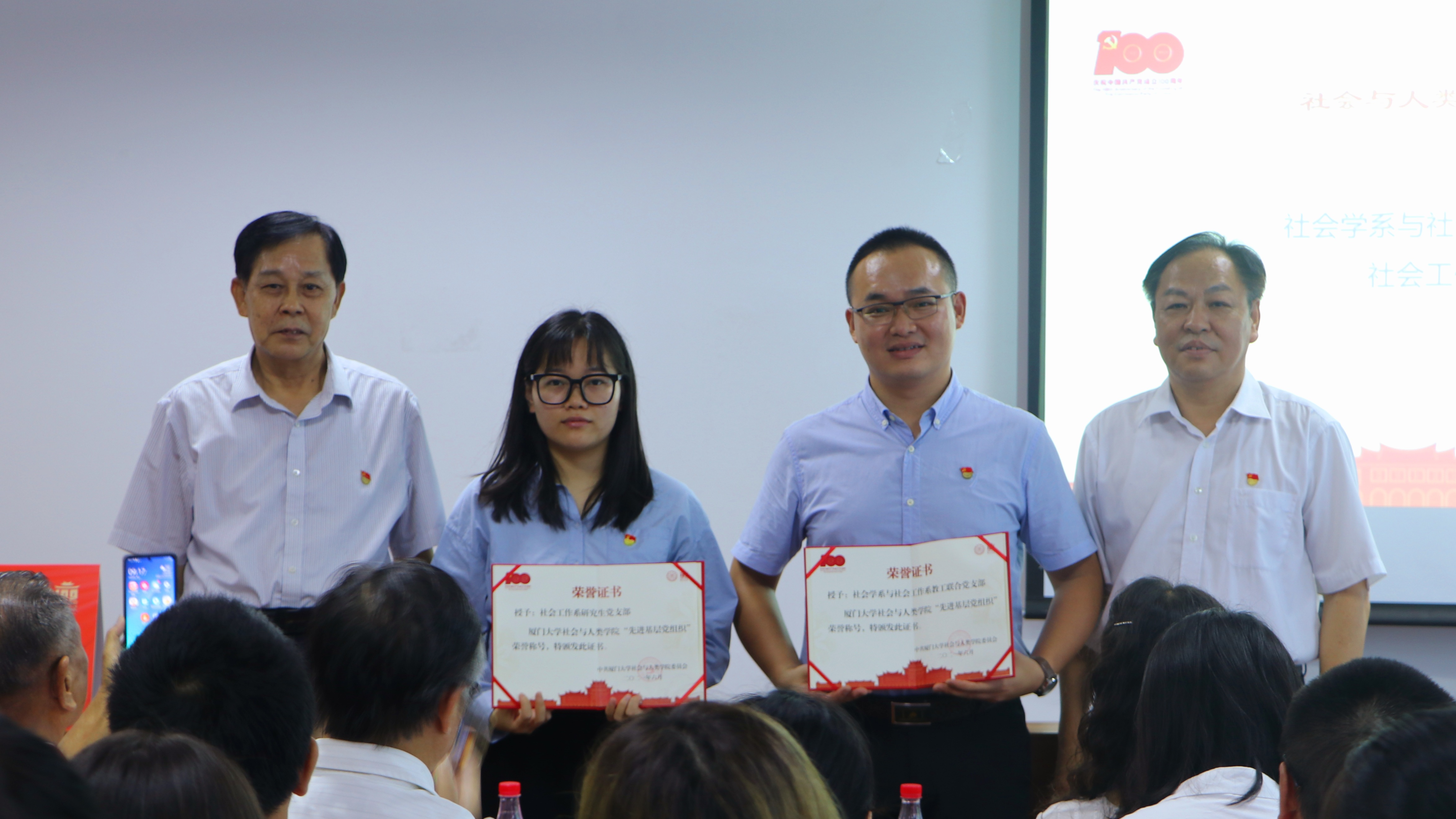 会上,陈夷同志宣读《新太阳集团5493con关于表彰优秀共产党员、优秀党务工作者和先进基层党组织的决定》。经各党支部评选推荐,院党委研究,毛毛等13名优秀共产党员、卜玉梅等6名优秀党务工作者和社会工作系研究生党支部等2个先进基层党组织获得表彰。江炳荣同志、杨敬达同志和学院党员领导为获表彰的优秀个人和先进集体代表颁奖。