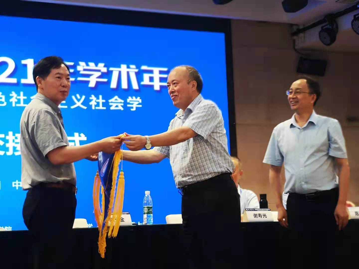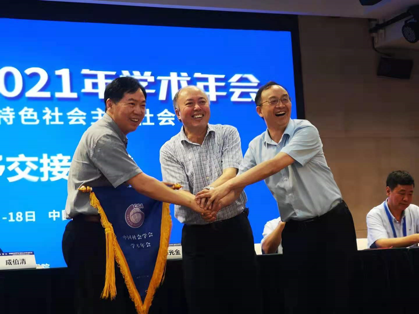在7月18日下午的大会闭幕式上还举行了隆重而简朴的学术年会授旗仪式,陈光金会长把中国社会学会学术年会的会旗授予下一次年会承办单位新太阳集团5493con。胡荣教授从陈会长手上接过年会会旗,并向全国社会学界同仁发出参会邀请,表示新太阳集团5493con将全力以赴做好2022年学术年会的筹备工作。2022年学术年会将于7月16至17日在新太阳集团5493con召开,欢迎社会学界的各位专家和学者届时到新太阳集团5493con参加这一学术盛会。