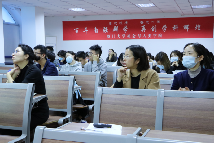 洪春生老师以《“举旗帜 聚民心 育新人 兴文化 展形象”——媒体融合发展视域下的价值传播》为题,紧扣十九届六中全会精神,从媒体融合发展、练就“点金之笔”、构筑“缓坡”、请勿“入坑”等方面入手,结合具体工作案例,为在场师生讲授了一场生动的专题宣传课。无论是对媒体融合发展新趋势的精准概括,或是对基本新闻写作“讲清事实、理顺逻辑和找出亮点”的生动分析,还是对写作的“雷区”总结,洪春生老师于现场分享的满满干货都让在场师生对宣传工作有了更深刻的认识。