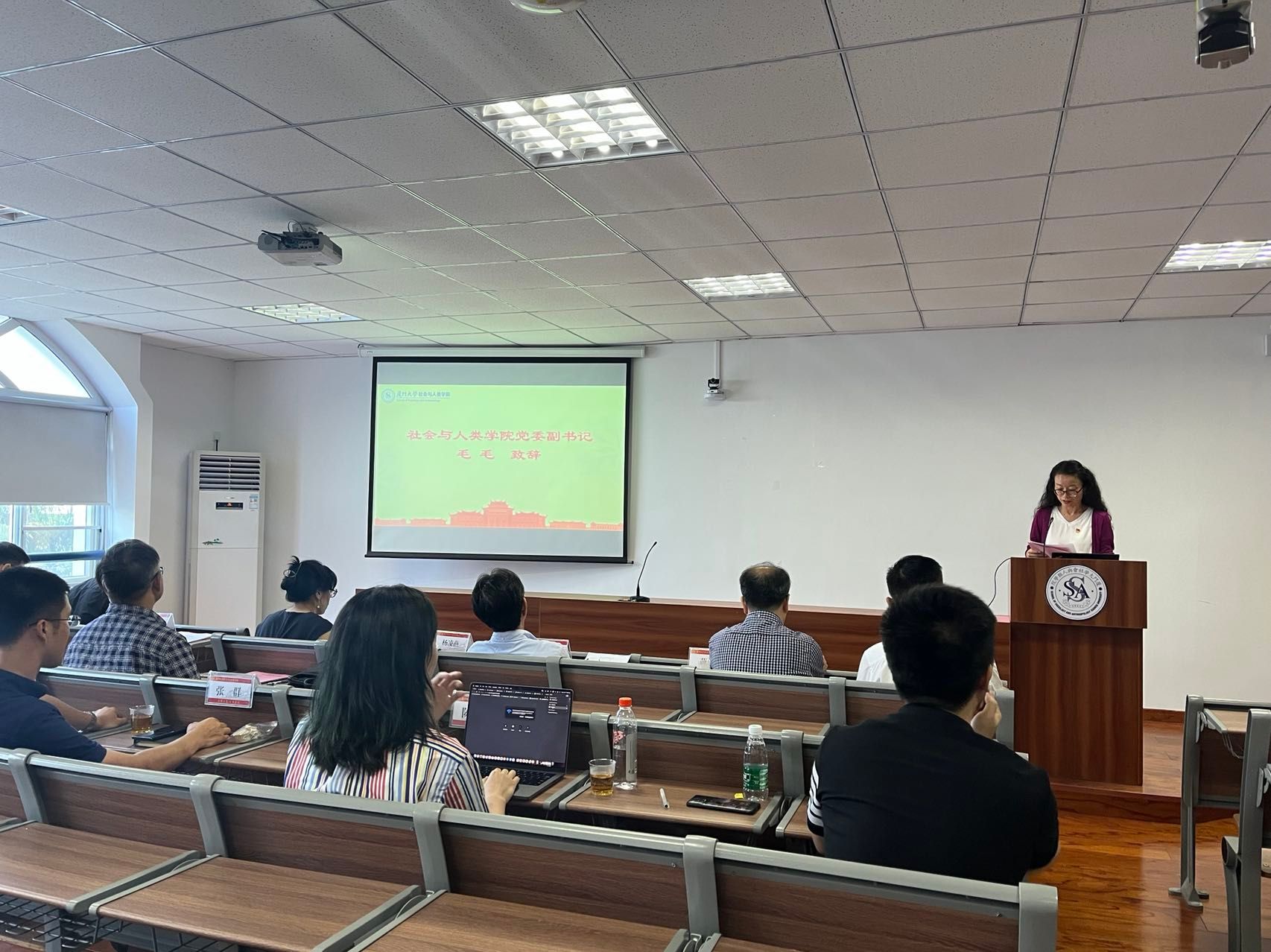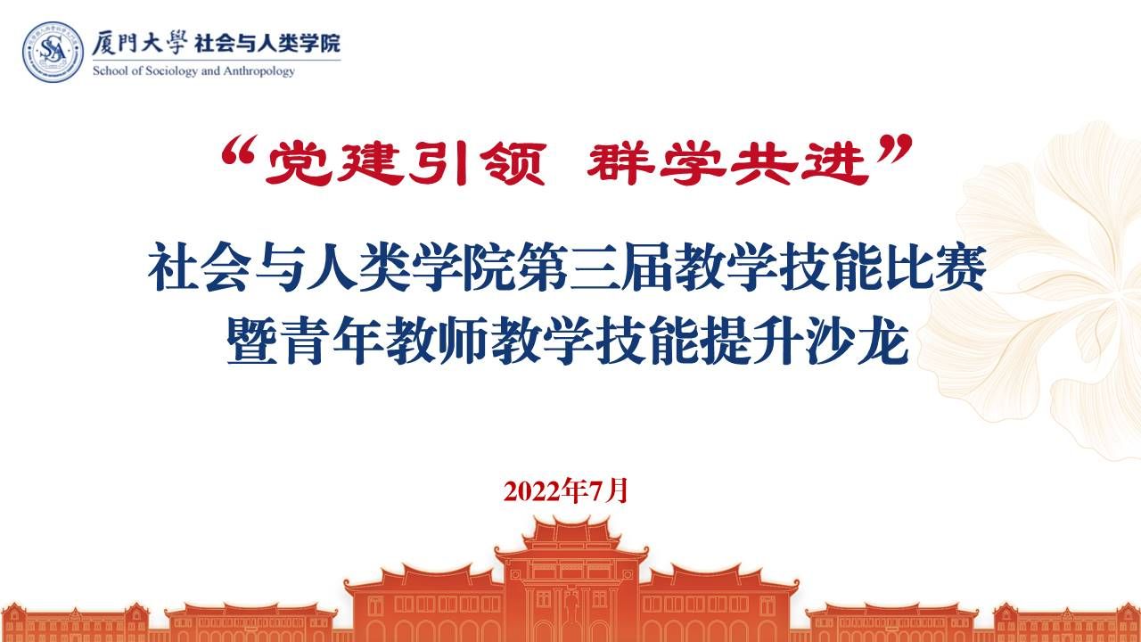 7月19日上午,由新太阳集团5493con教师发展中心和社会与人类学院联合举办的“党建引领 群学共进”——社会与人类学院第三届教学技能比赛暨青年教师教学技能提升沙龙在曾呈奎楼B栋二楼举行。新太阳集团5493con教师发展中心党支部书记、中心副主任薛成龙,中心教学指导委员会主任朱水涌、专家郑尚宪、专家郑宏,社会与人类学院党委书记王晓丽,副院长张先清,党委委员、人类学与民族学系教工党支部书记蓝达居,社会学系主任易林,社会工作系主任助理杨凌燕,2019级本科生唐晓宇,以及部分师生代表参加了活动。社会学系汪子臻、人类学与民族学系张群、社会工作系陈祺祺三位教师参加比赛。学院党委副书记毛毛为比赛致辞。